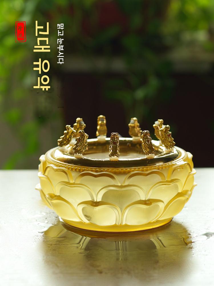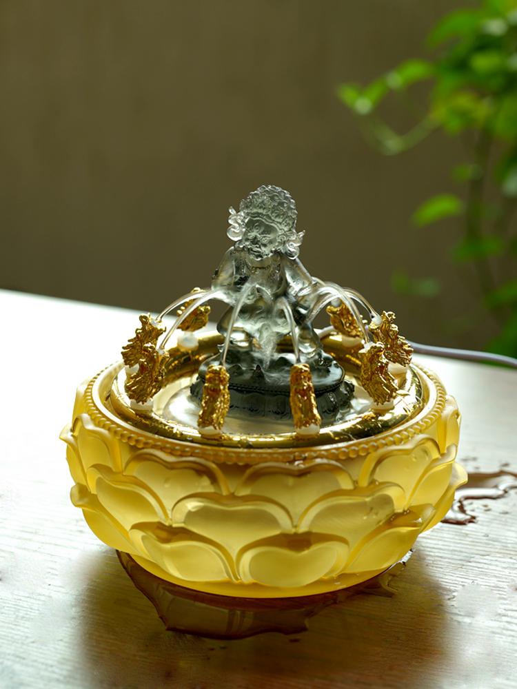 유리 5방 급수 노란색 부의 신 검은색 부의 신 부처님 동상 부를 끌어들이는 물 순환 장식품 보물 구룡 목욕 부처님 분지 새것