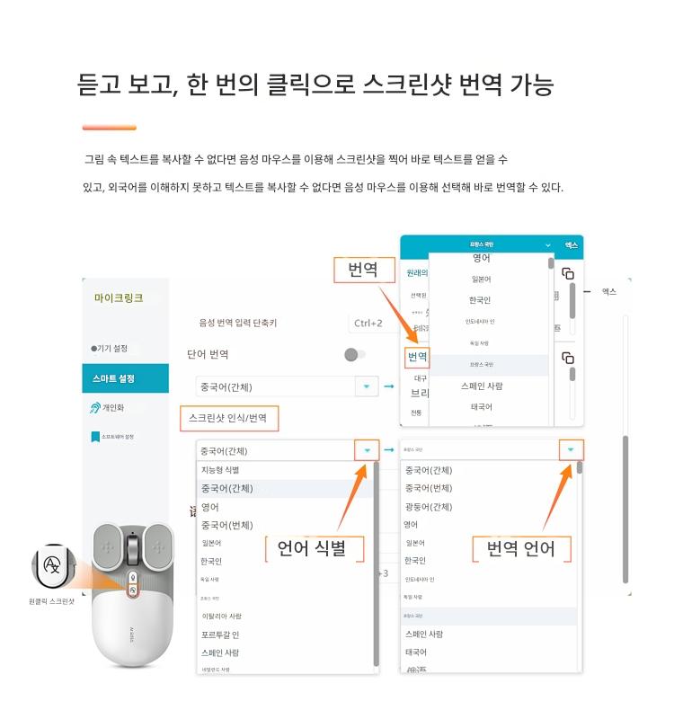음성 다기능 무선 마우스 인공 ai 지능형 무소음 듀얼모드 타이핑 번역 충전 블루투스 마우스 M7