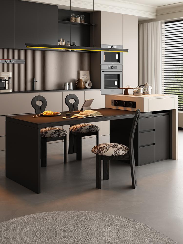 이탈리아 미니멀리스트 록 플레이트 섬 식탁 통합 가정용 접이식 견고한 나무 다운턴 작은 주방 섬