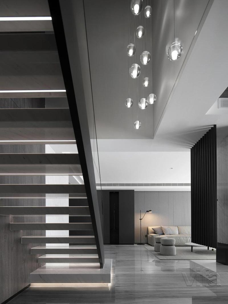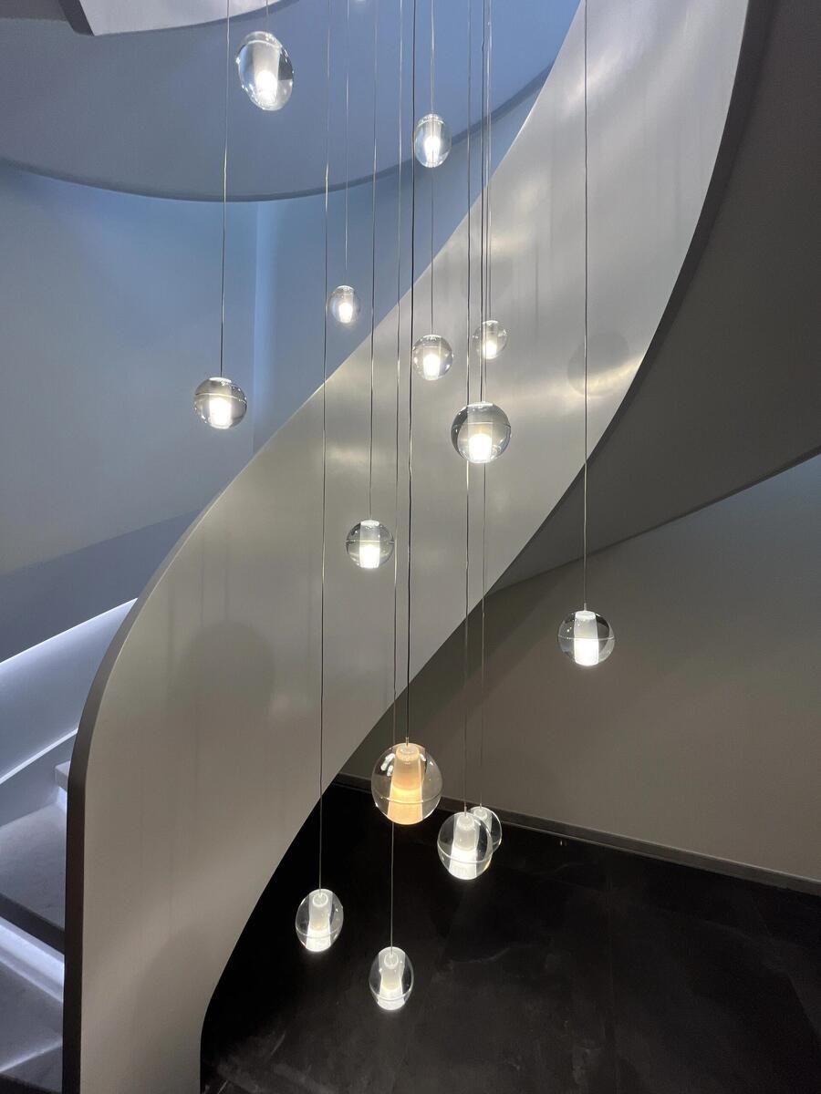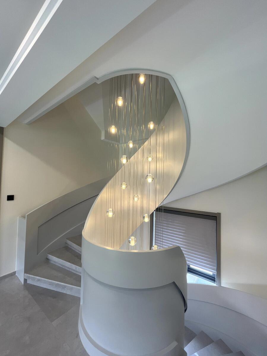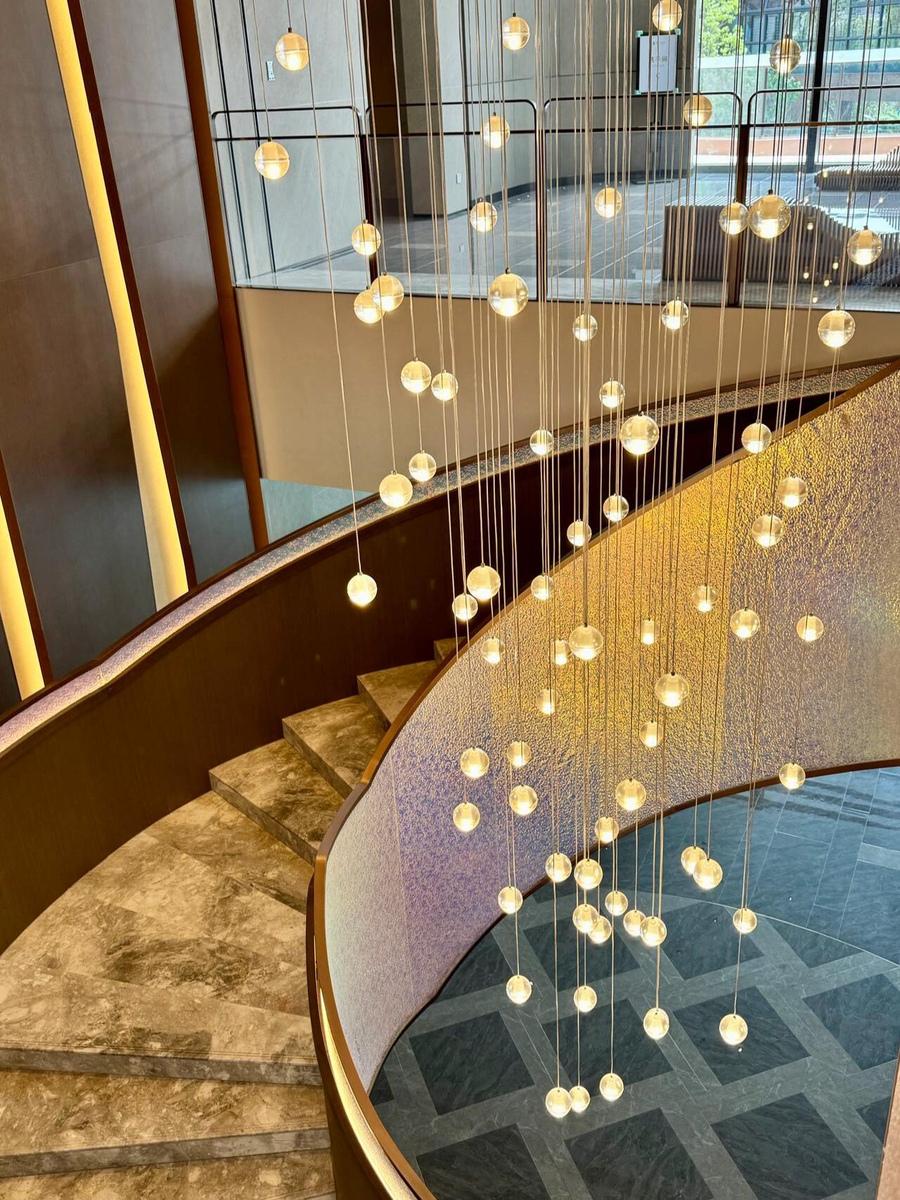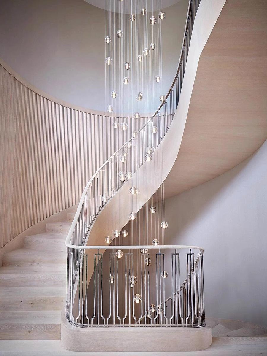 이탈리아 미니멀리스트 모던 크리스털 계단 램프 로프트 아파트 듀플렉스 빌라 홀로우 하이 유성우 롱 샹들리에