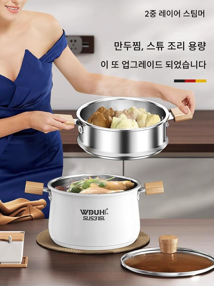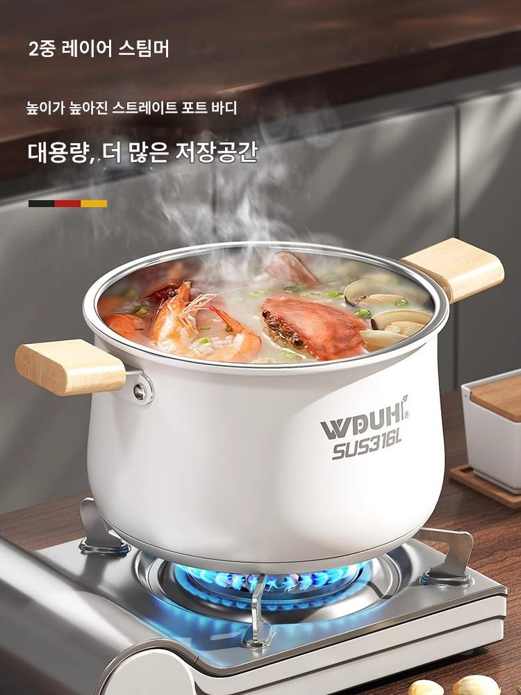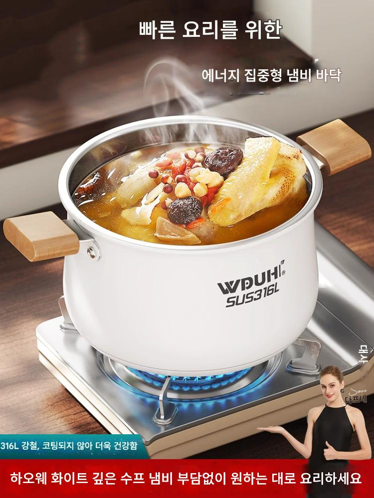 일본식 국 냄비 316L 두꺼운 스테인리스 스틸 가정용 이중 귀 찜 죽 노스틱 팬 유도 쿠커 가스 범용