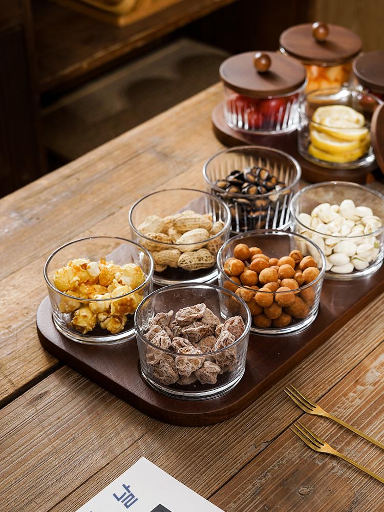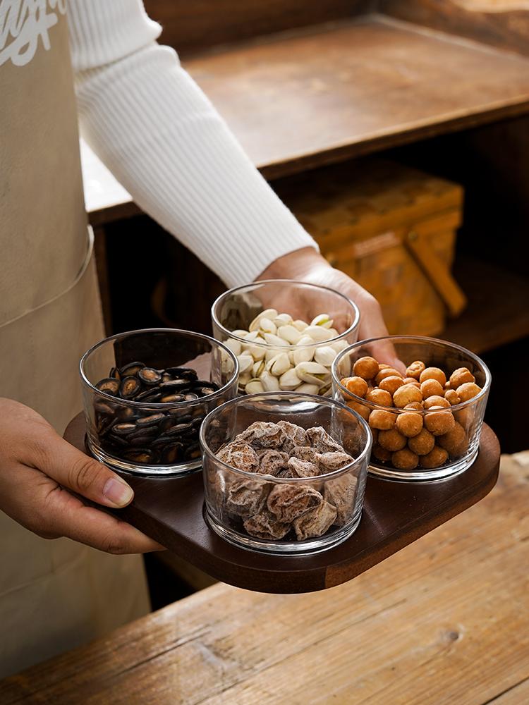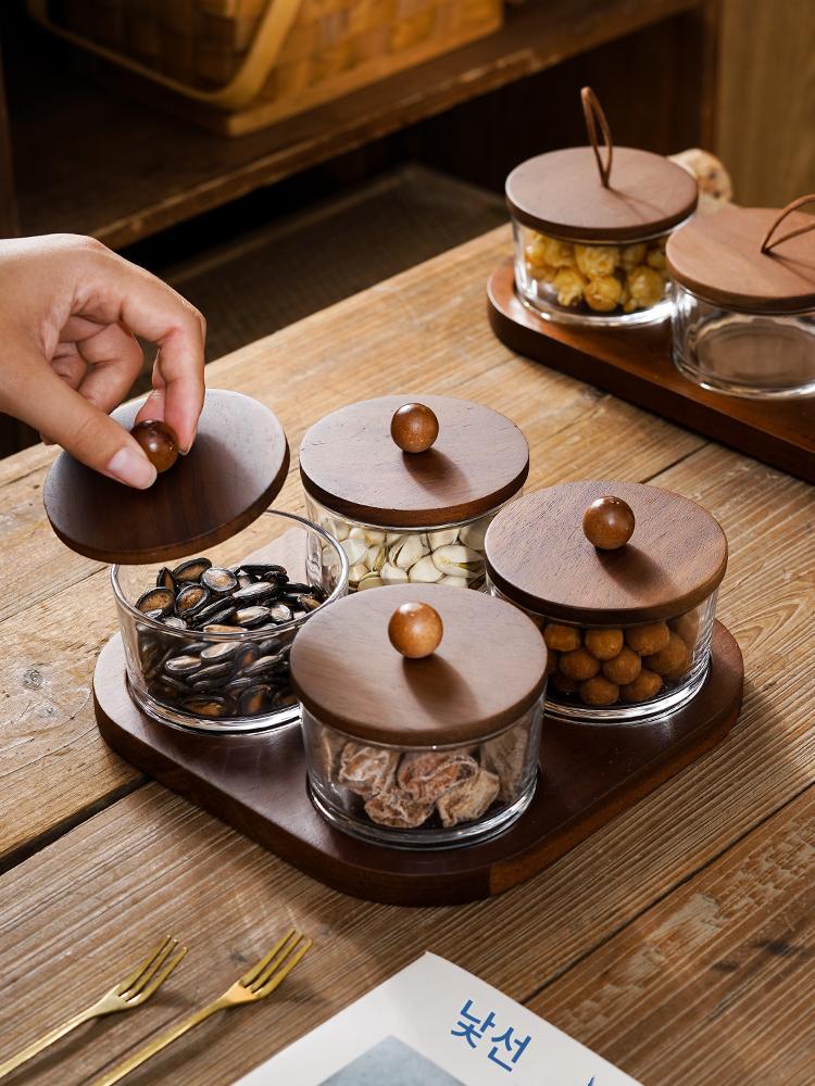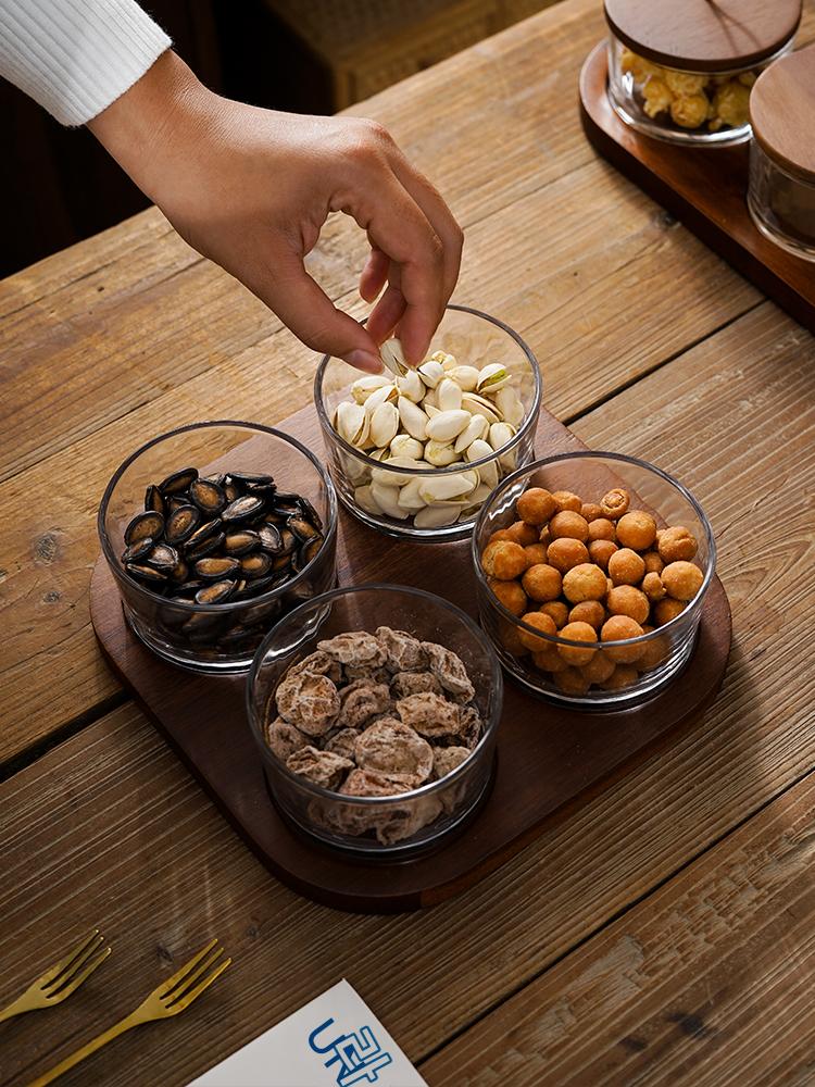일본식 분할 과일 접시 홈 거실 커피 테이블 뚜껑이 있는 접시 둥근 유리 그릇 과일 간식 접시 말린 과일 심플