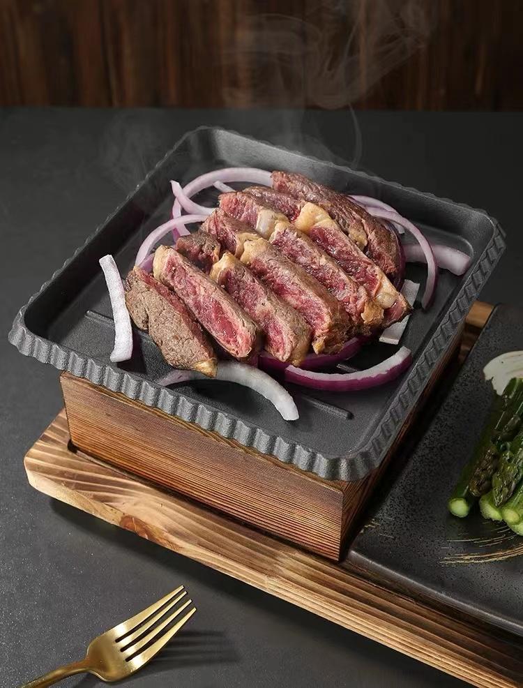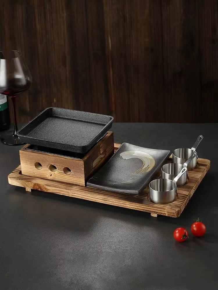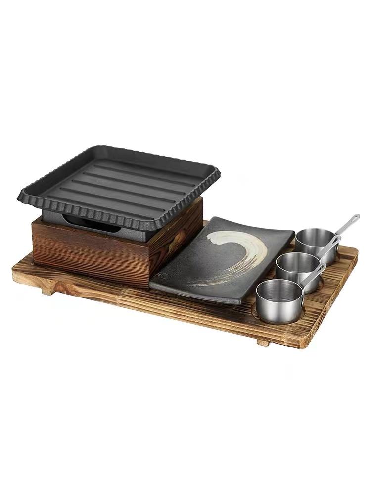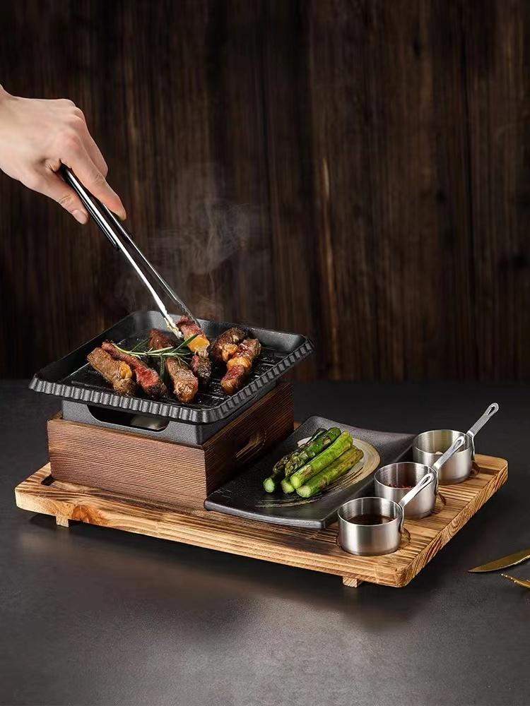 일본식 사각 주철 바베큐 플레이트 알코올 난방 단열로 레스토랑 일본식 요리 플레이트 더블 세트 식기