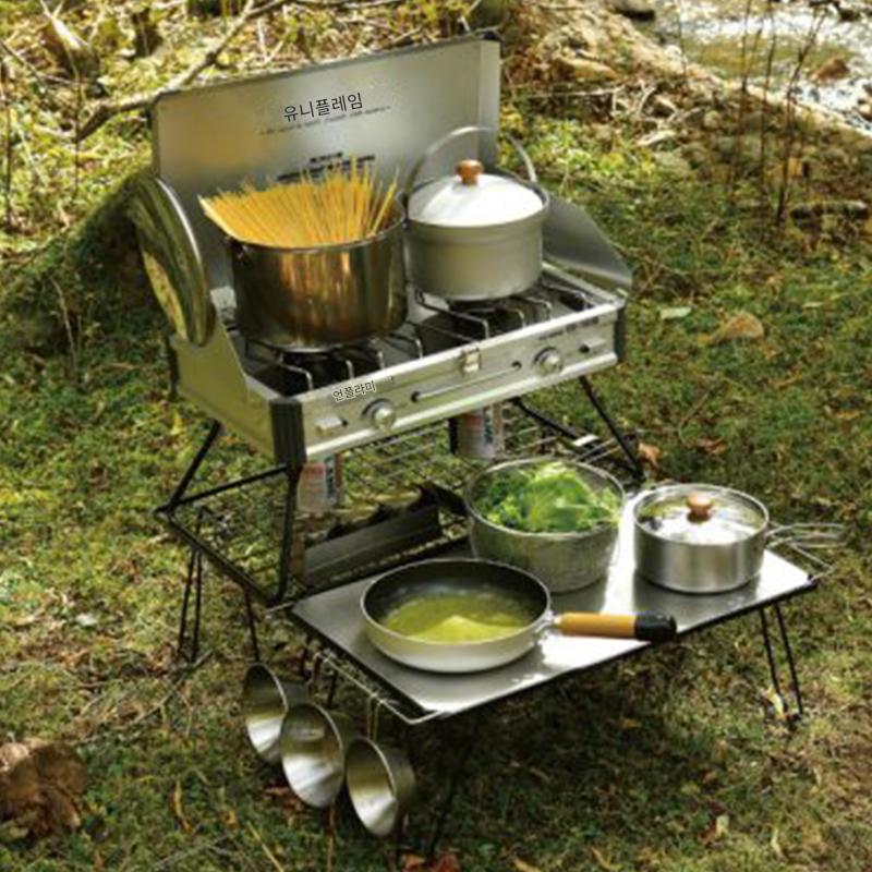일본 UNIFLAME 야외 캠핑 셀프드라이빙 접이식 휴대용 테이블 캠핑 다이닝 테이블 블랙 초경량 다층 스태킹 랙