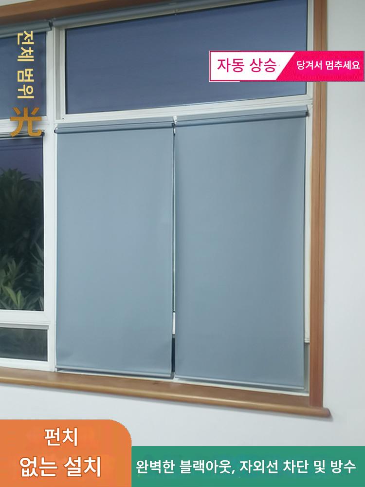 자동 상승 완전 블랙아웃 침실 발코니 선쉐이드 블랙아웃 커튼 펀치 프리 롤러 블라인드 풀 커튼 카드 스트립 붙여넣기 설치