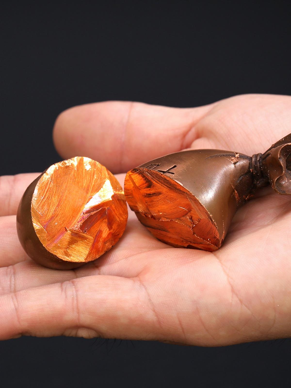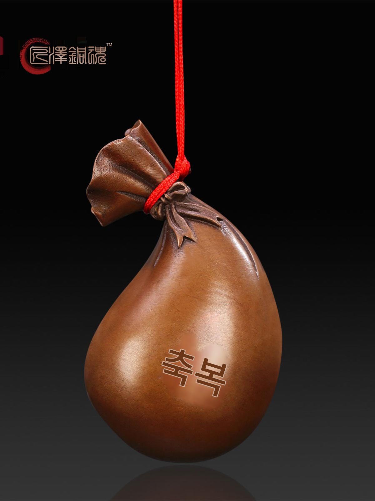 장쩌 구리 영혼 순수 구리 손잡이 조각 솔리드 포춘 백 포춘 백 돈 가방 수집 부 놀이 조각 펜던트 허리 장식품