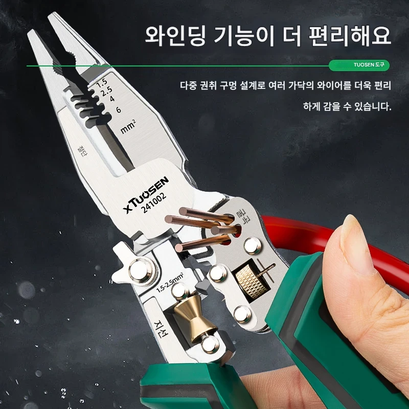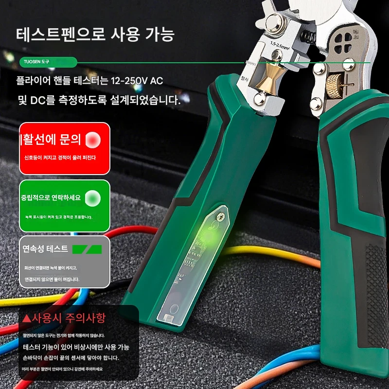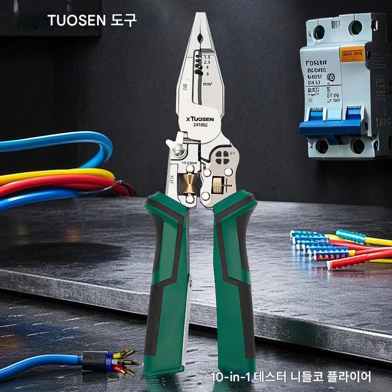 전기 테스트 펜이 포함된 Tuosen 10-in-1 다기능 전선 피복 벗기기 플라이어, 전선 분할, 권취, 압착 및 절단 조절 가능