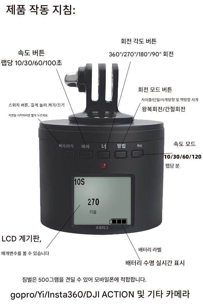 전기 회전 짐벌 지연 GoPro 모바일 폰 Insta360 DJI OSMO 타임랩스 카메라 360도 액세서리