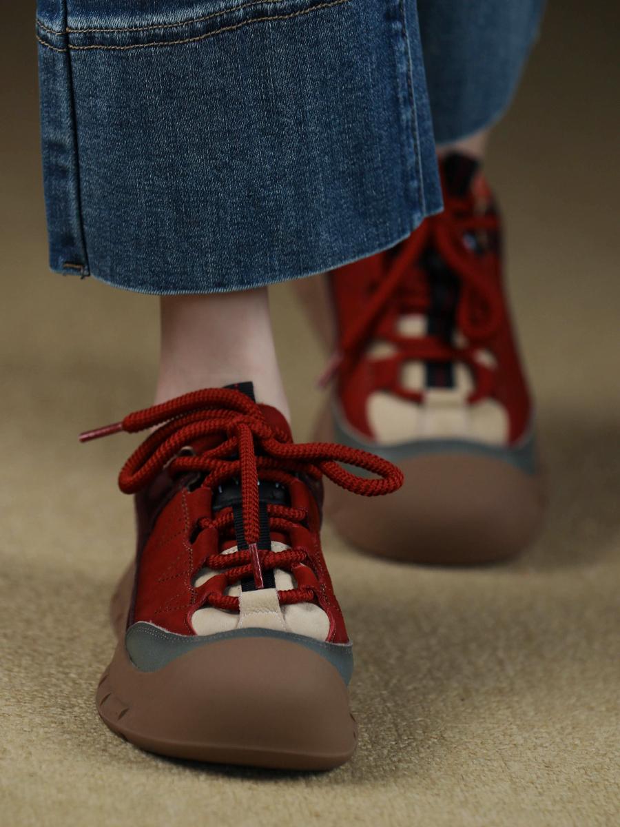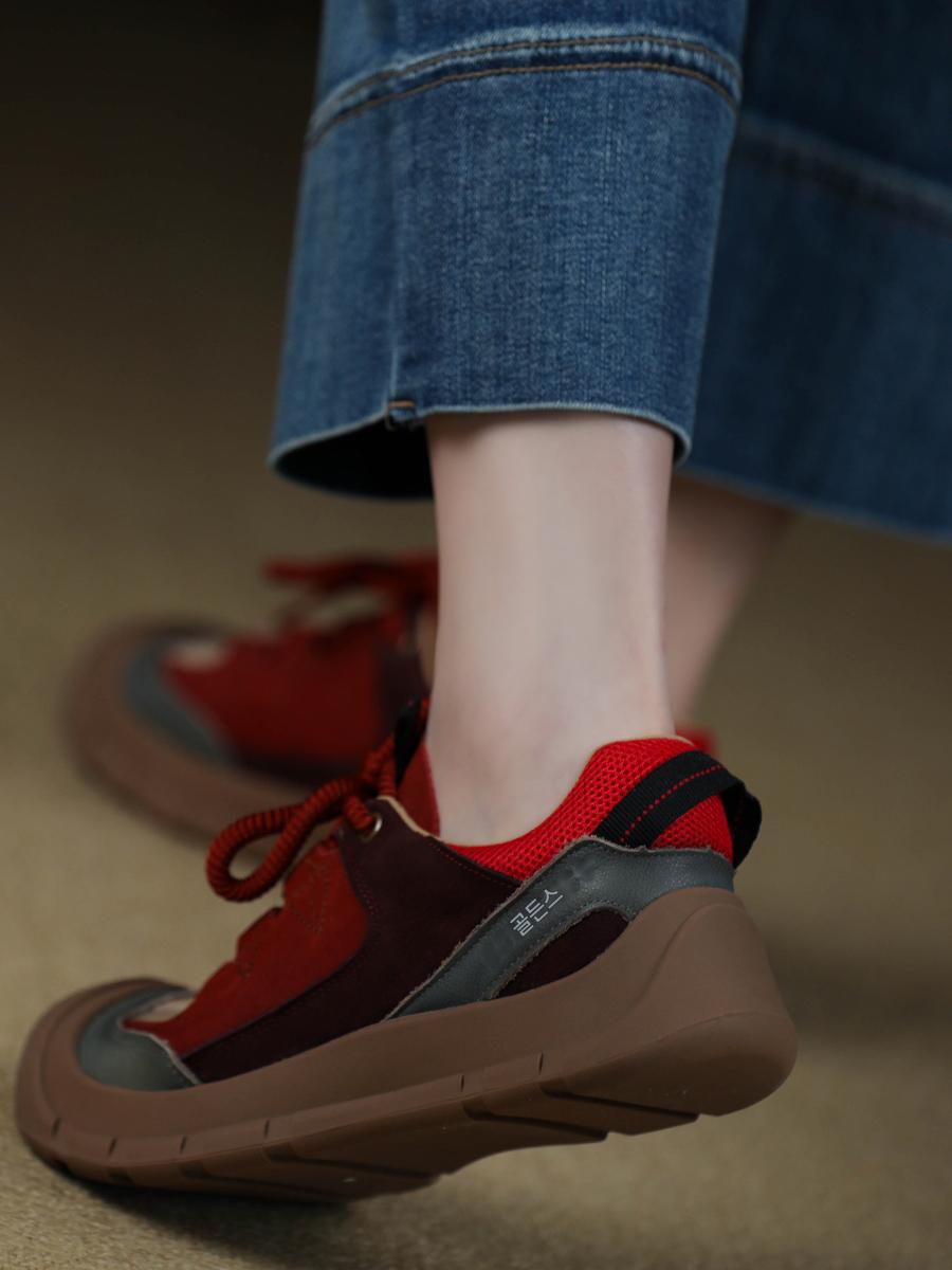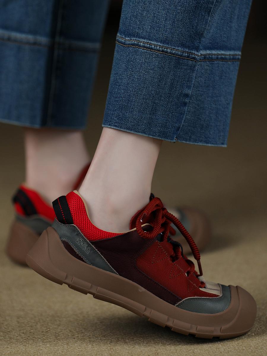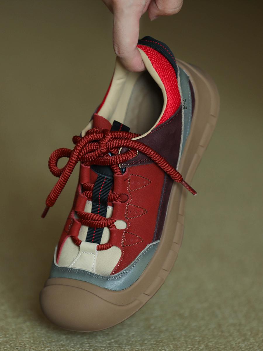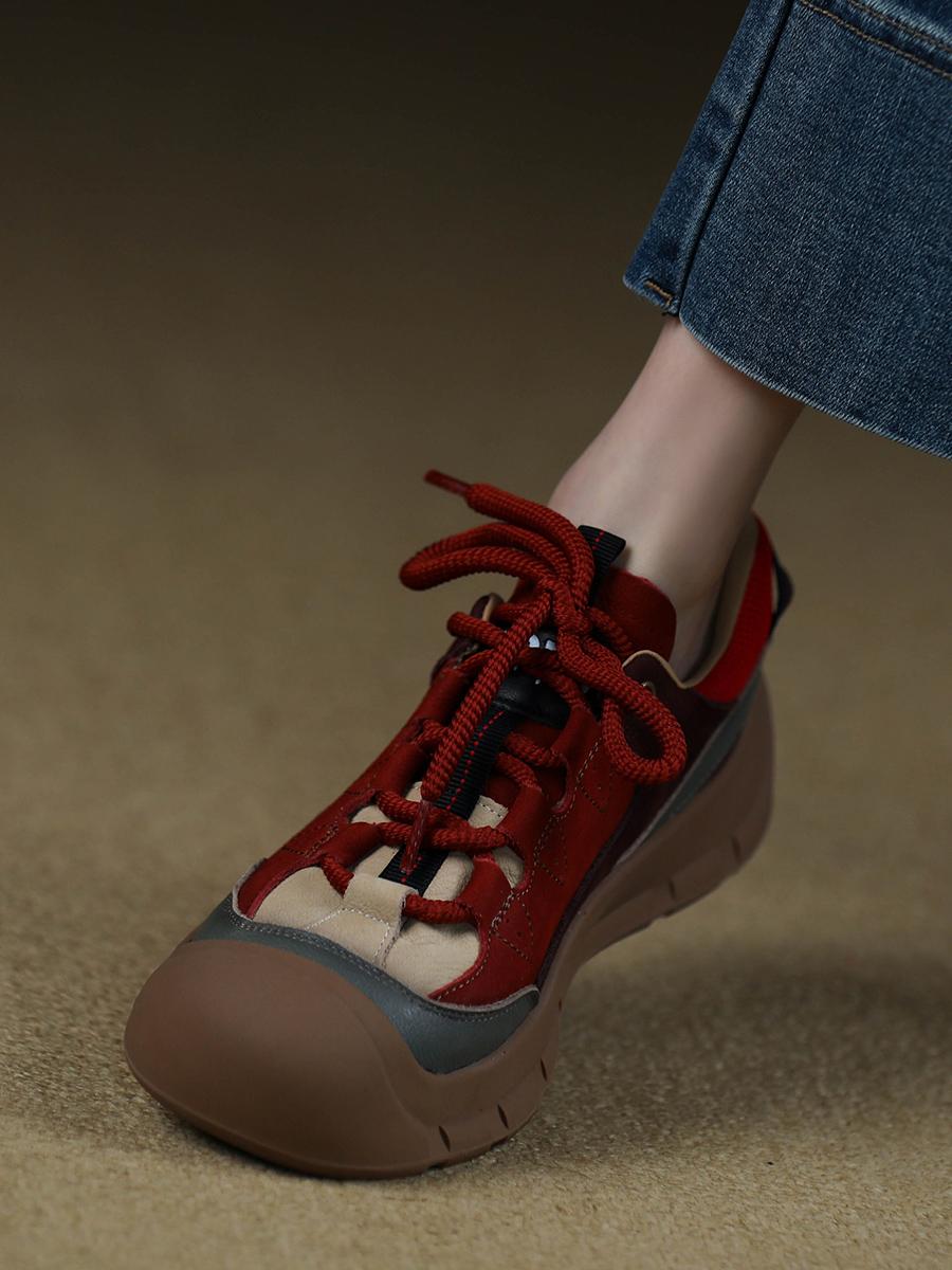 정품 가죽 Angra 레드 두꺼운 밑창 레이스업 슈즈 2024 가을 신상 패션 캐주얼 스포츠 슈즈 여성용 등산화