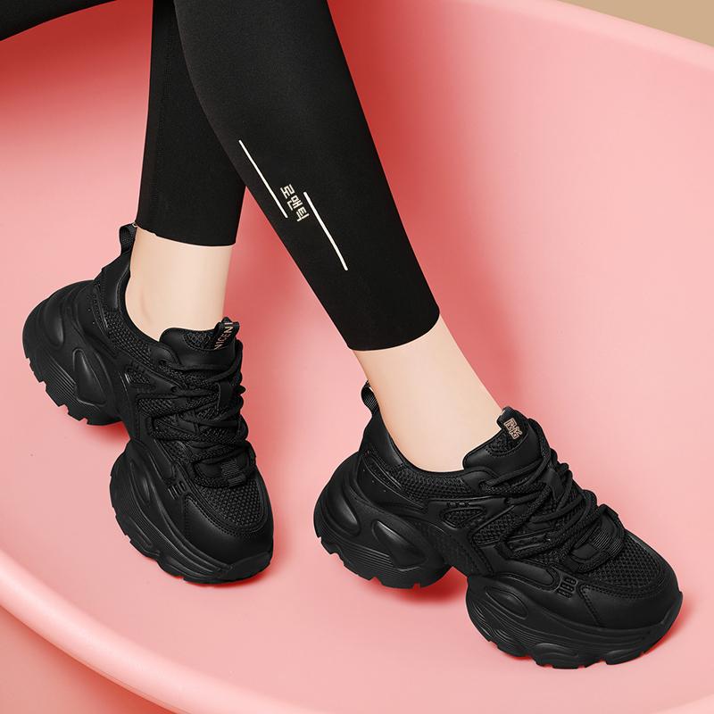 [정품 카운터] 올블랙 대드 슈즈 인스 트렌드 2024 신상 가을 겨울 여성화 플러스 벨벳 캐주얼 스포츠