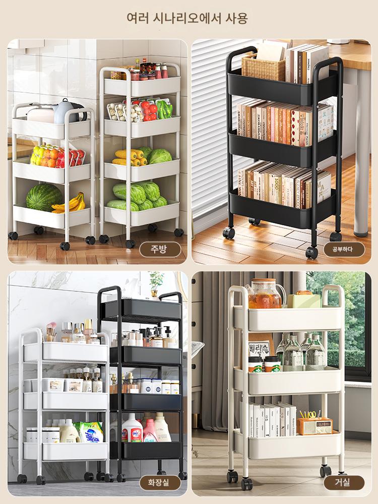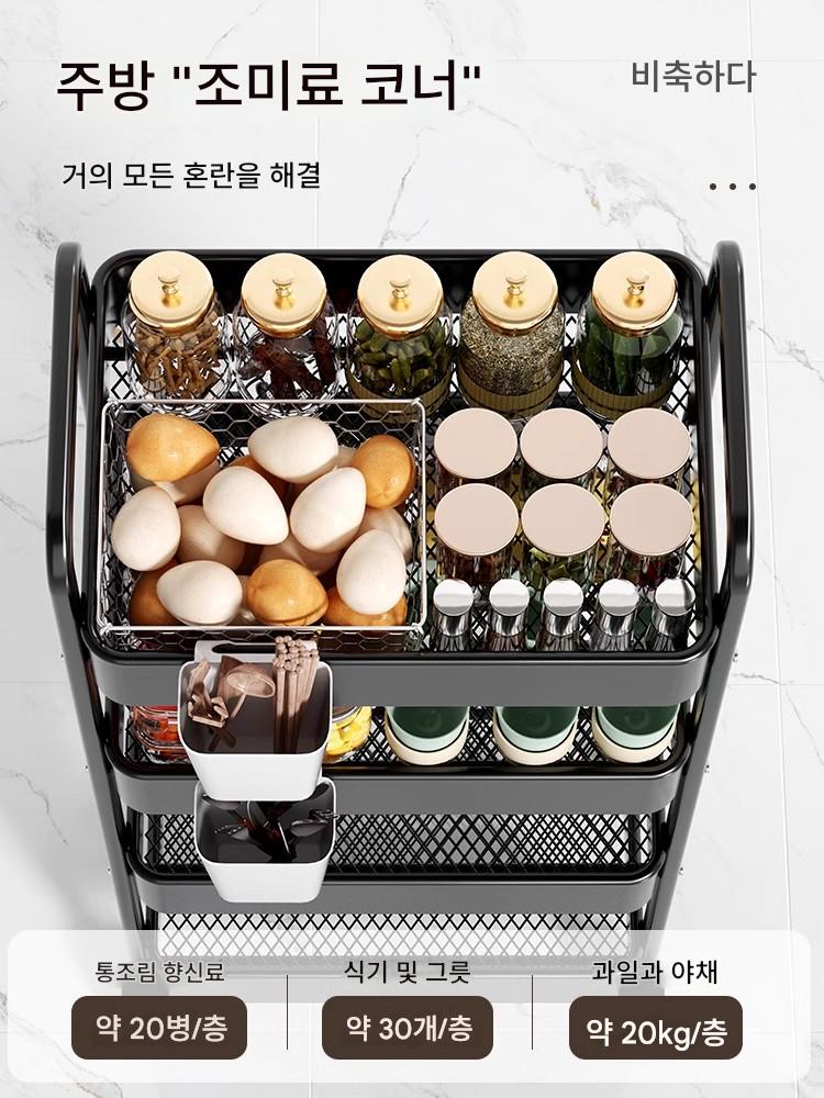 조미료 과일 및 야채 바구니용 주방 트롤리 랙 다층 수납 랙 바닥 이동식 수납 랙