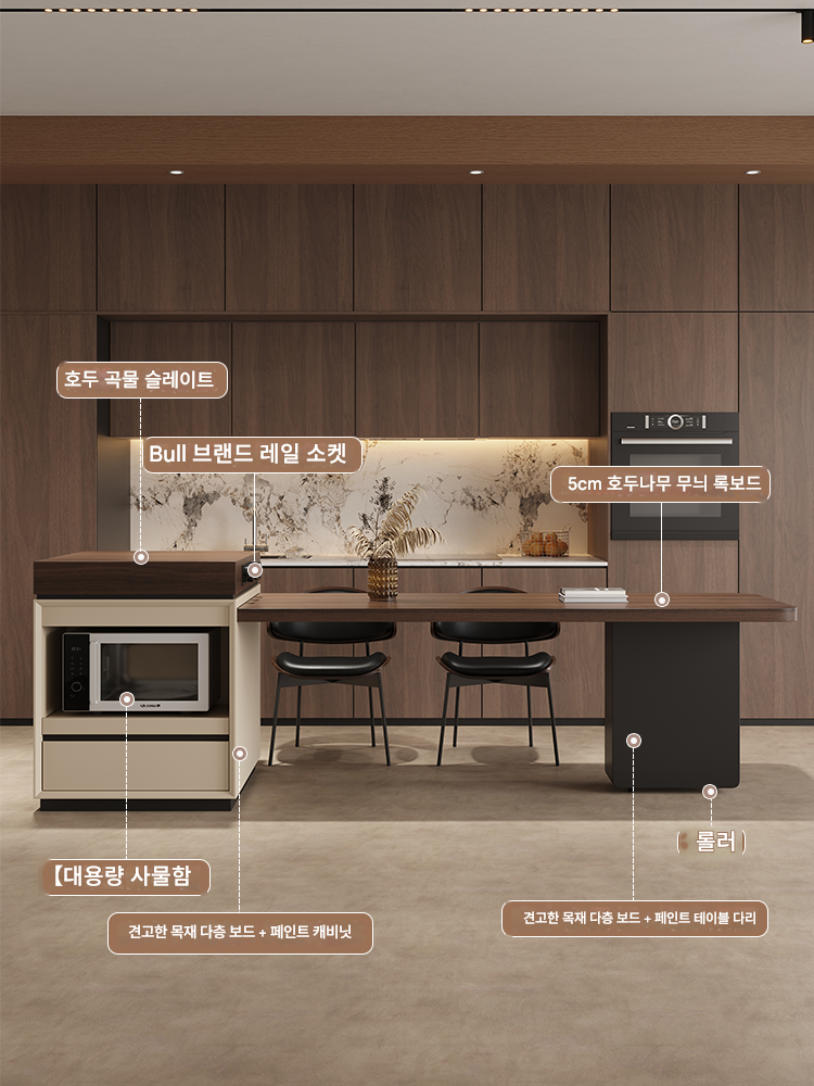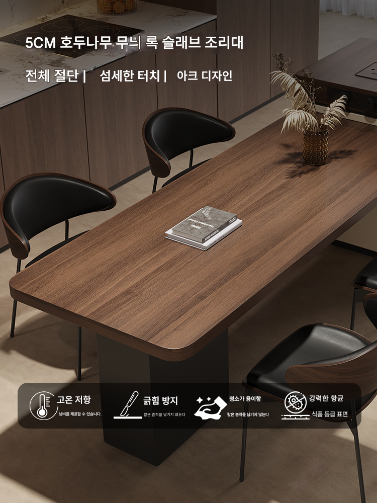 중세 스타일 검은 호두 나무 무늬 록 플레이트 섬 테이블 식탁 통합형 접이식 다기능 대형 아파트 고급 섬 테이블