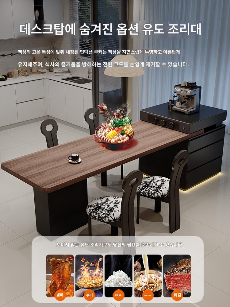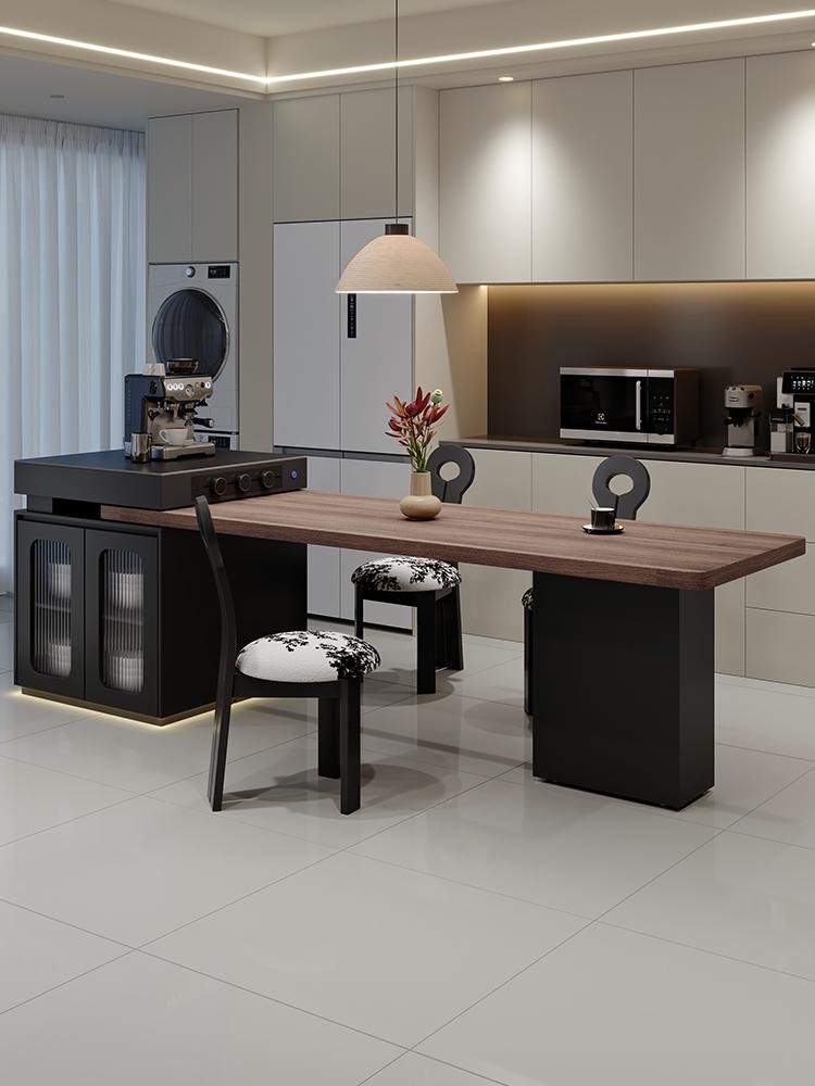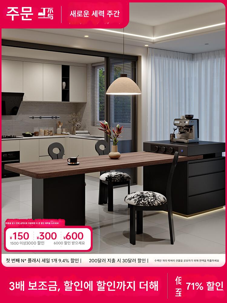 중세 호두나무 무늬 록보드 수납식 섬 테이블 식탁 통합 가정용 전자렌지 수납 다기능 식사 섬