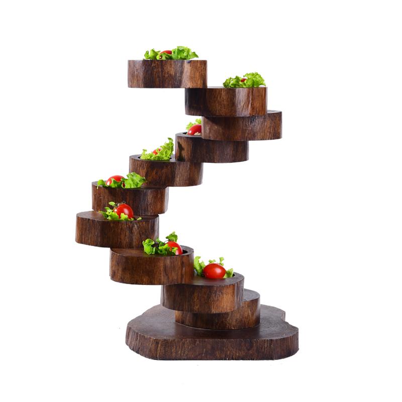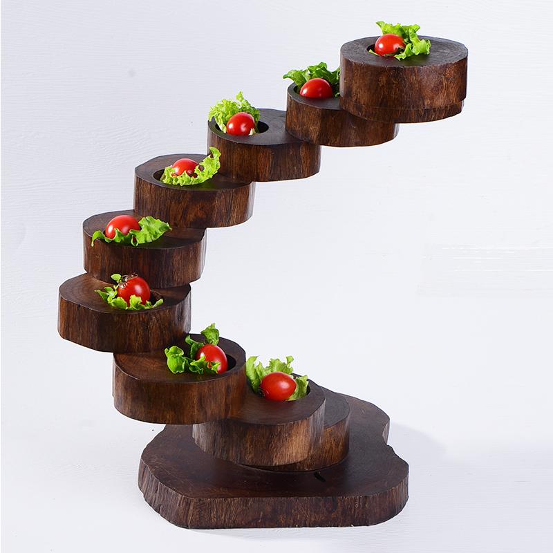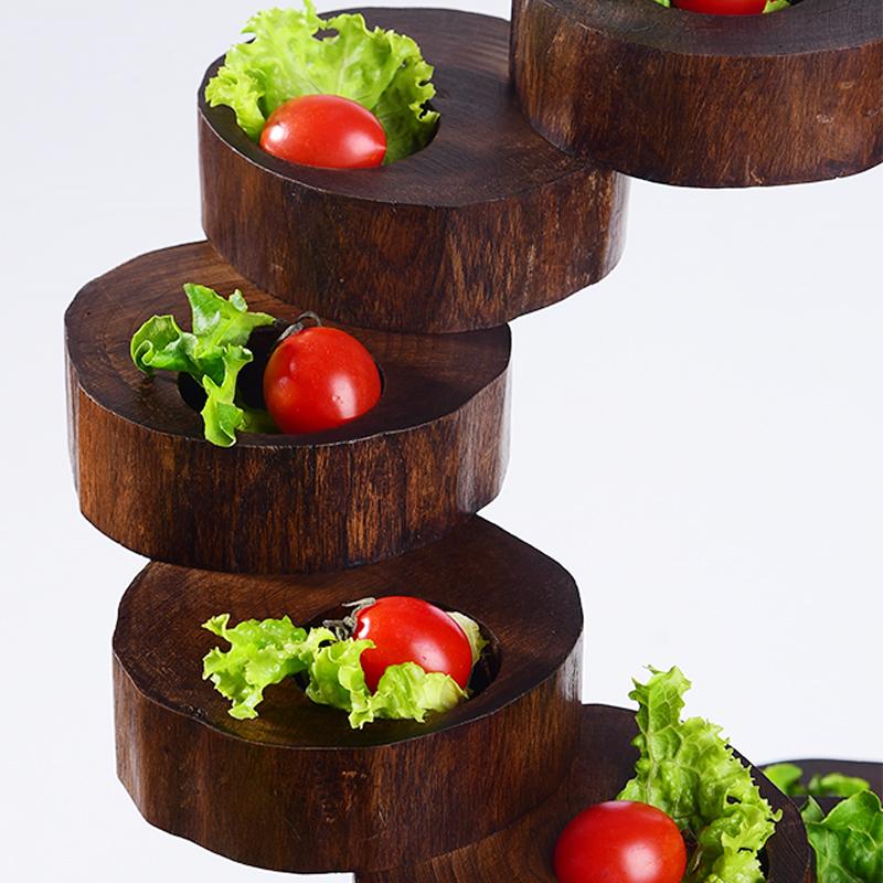 창의적인 농가 특선 요리, 개인 시그니처 요리, 예술적 컨셉 요리, 회전식 단계별 상승 접시, 세련된 식기, 새로운 나무 접시