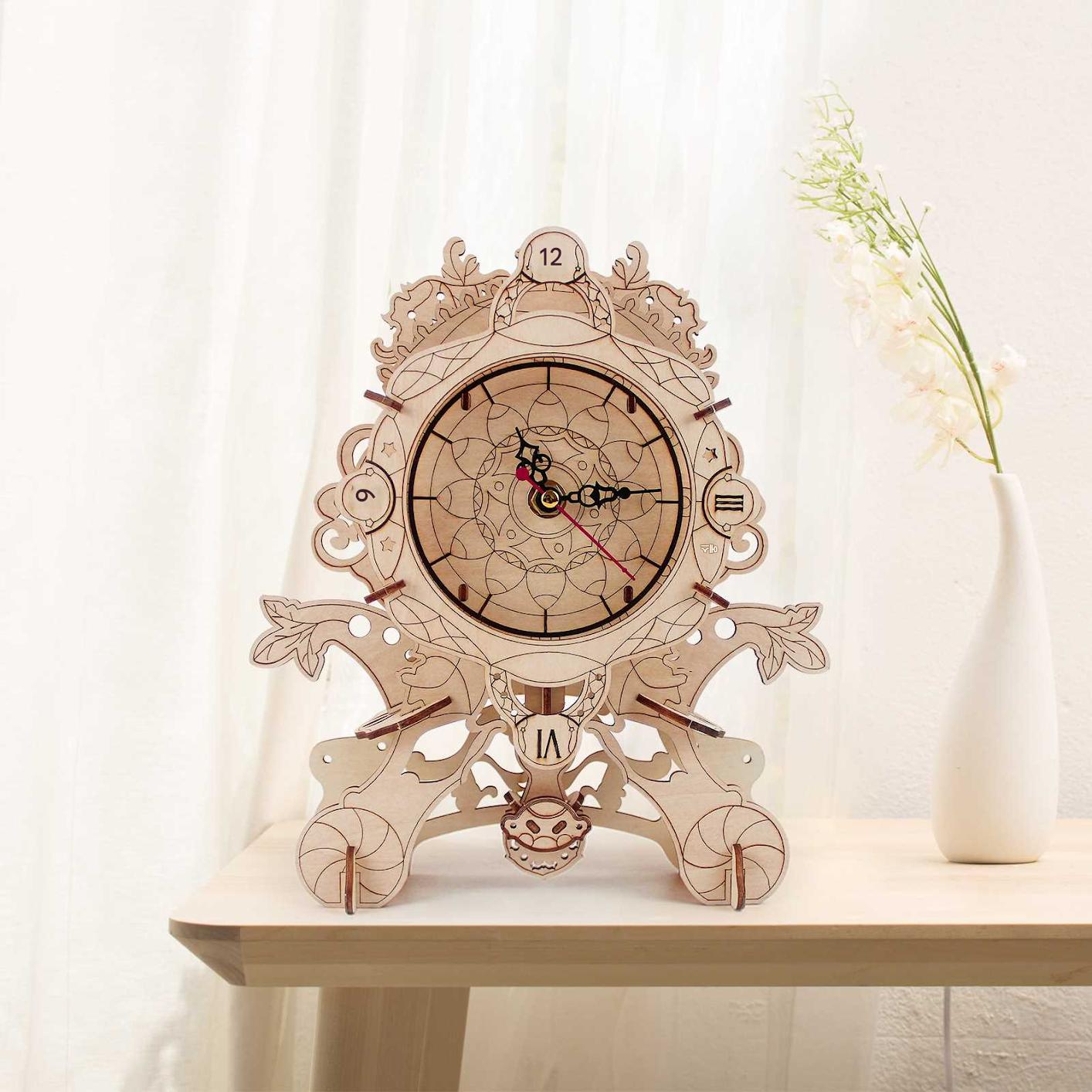 창의적인 핸드메이드 3D 퍼즐 나무 조각 벽시계 시계 조립 모델 테이블 시계 선물 장식품