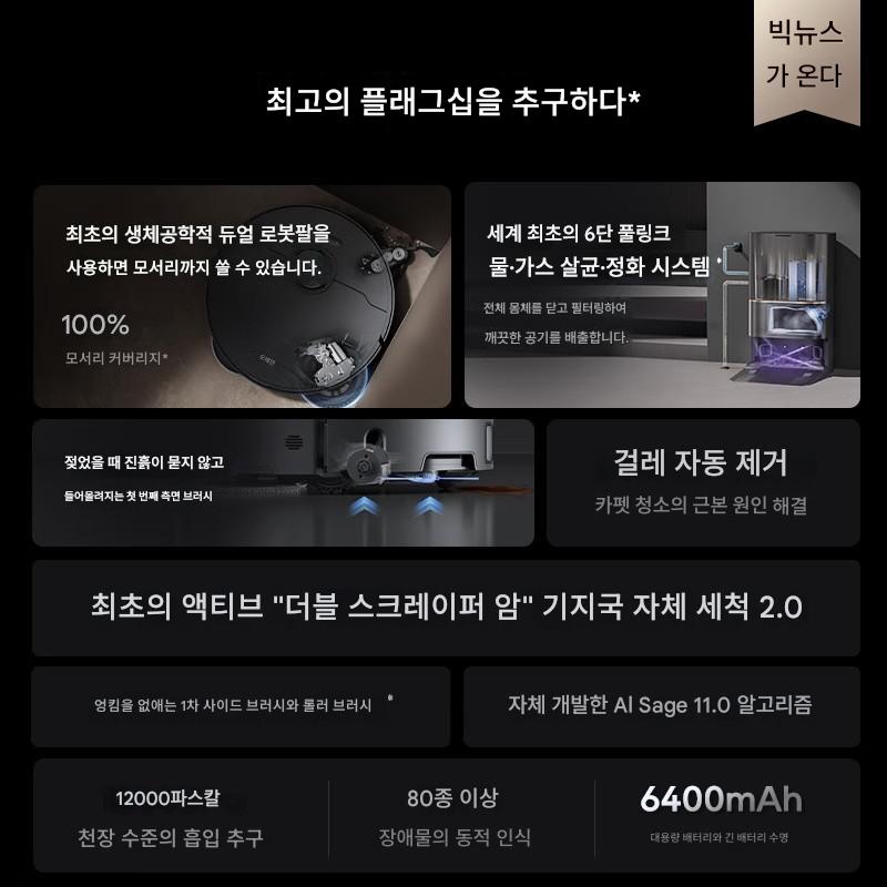 청소, 걸레질, 세척, 걸레질 암과 기지국 자체 세척 기능이 통합된 Dreame X40 Pro 청소 로봇 청소기