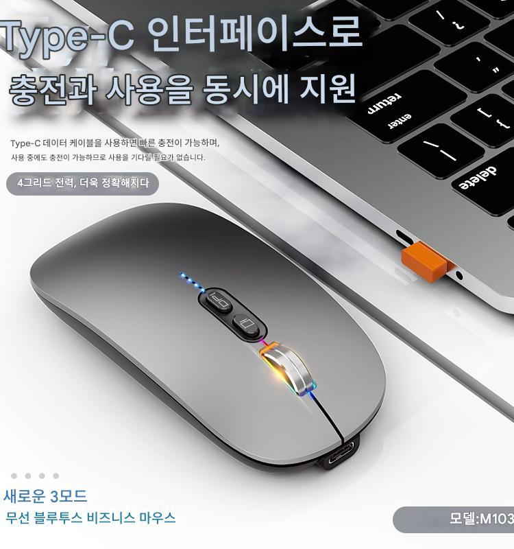 충전식 발광 사무실 마우스 홈 심플 휴대용 무소음 Type-C 블루투스 3모드 무선 마우스 범용