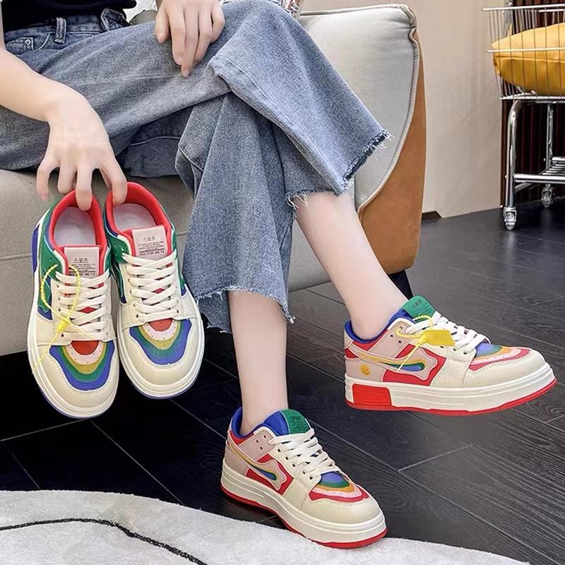 “캐주얼 컬러 매칭 레인보우 만다린 덕 화이트 슈즈 여성용 2025년 신상 봄 가을 폭발적 정품 가죽 네트 셀러브리티 두꺼운 밑창 스포츠 슈즈”의 첫 상품평을 남겨주세요