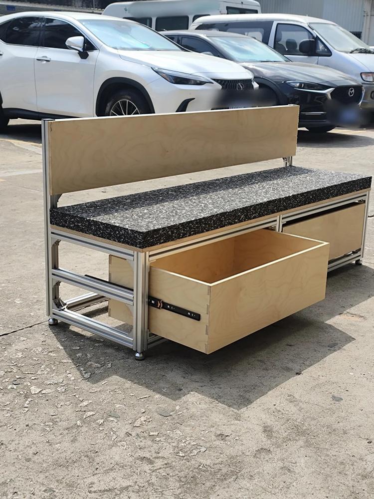 커피숍 등받이 보관 부스 정원 의자 상업용 알루미늄 프로파일 오션 보드 야외 벤치 더블 소파 벤치