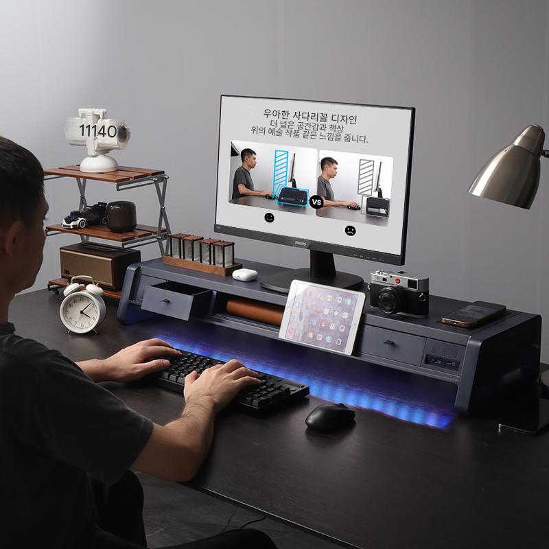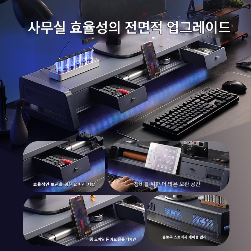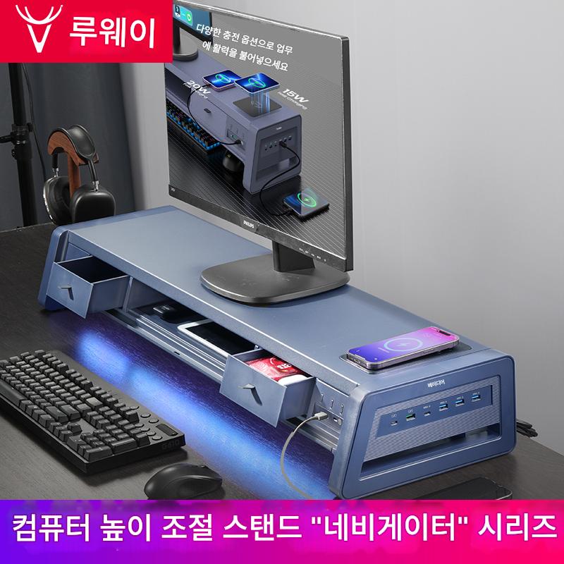 컴퓨터 높이 조절 스탠드 USB 서랍 보관함 사무실 유물 데스크탑 보관 데스크탑 모니터 지지대 목 보호대