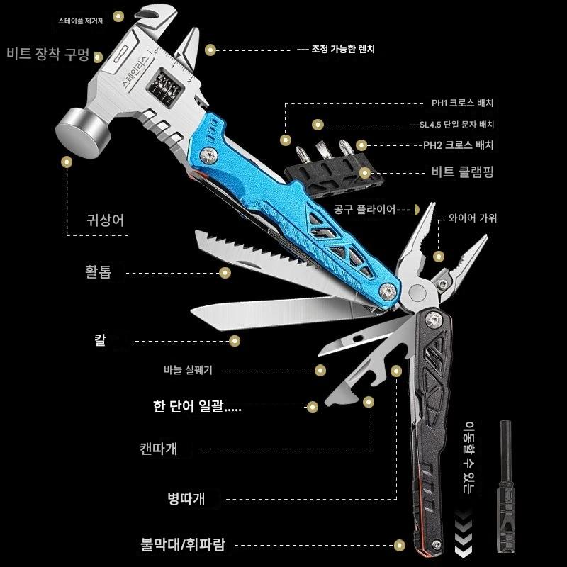 케이블카 다기능 렌치 망치 접이식 플라이어 조합 야외 캠핑 현장 차량 휴대용 창문 깨기 도구