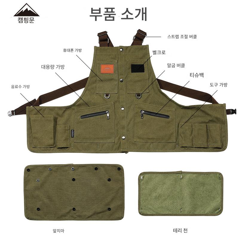 코만 아웃도어 캠핑 작업복 Q1 코튼 천 방화 앞치마 다기능 확장형 피크닉 장비 조끼 의류