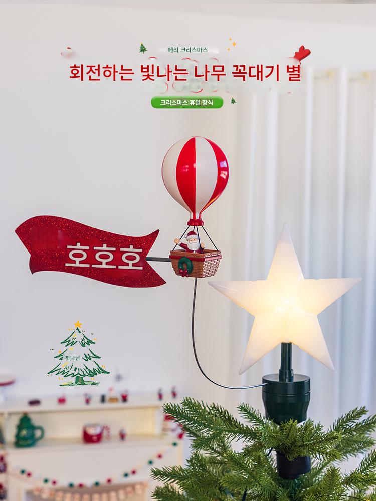 크리스마스 대형 크리스마스 트리 꼭대기 장식 빛나는 별빛 장식품 DIY 전기 회전 장식품 장면 레이아웃