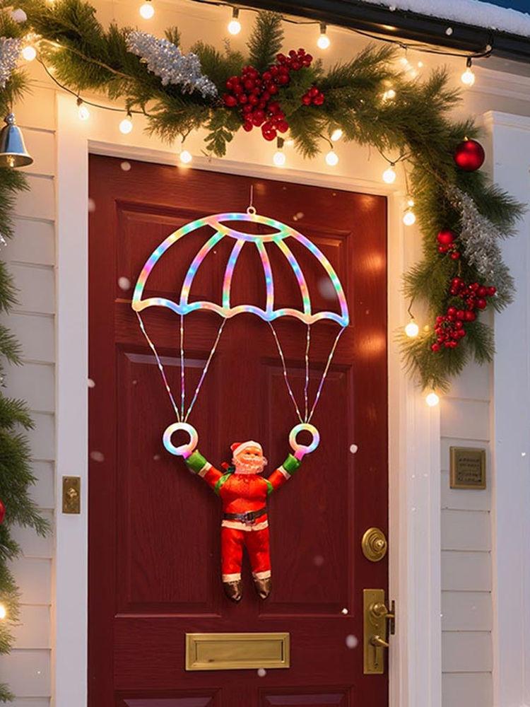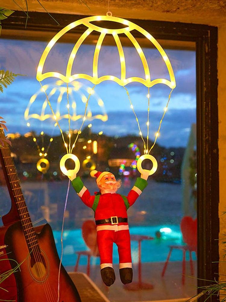 크리스마스 장식 조명 사다리 산타클로스 인형 낙하산 창문 문 걸이 파티 하우스 장식 조명