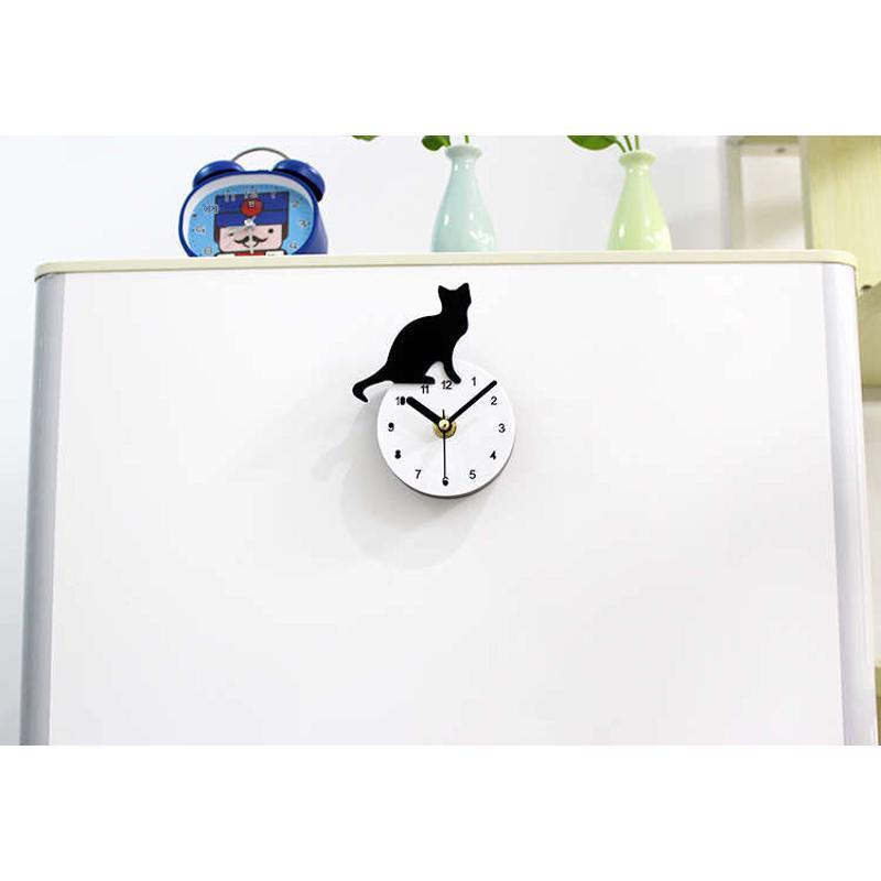 크리에이티브 새끼 고양이 3D 냉장고 시계 거실 주방 자석 냉장고 스티커 시계 메시지 스티커 벽시계 무음 시계