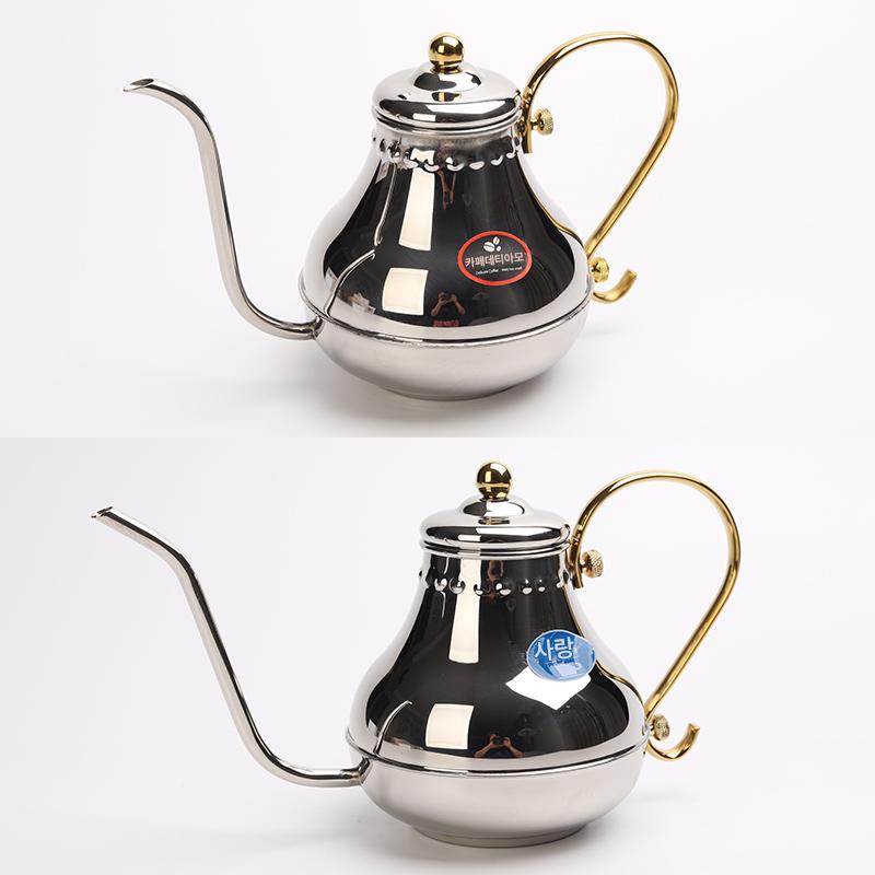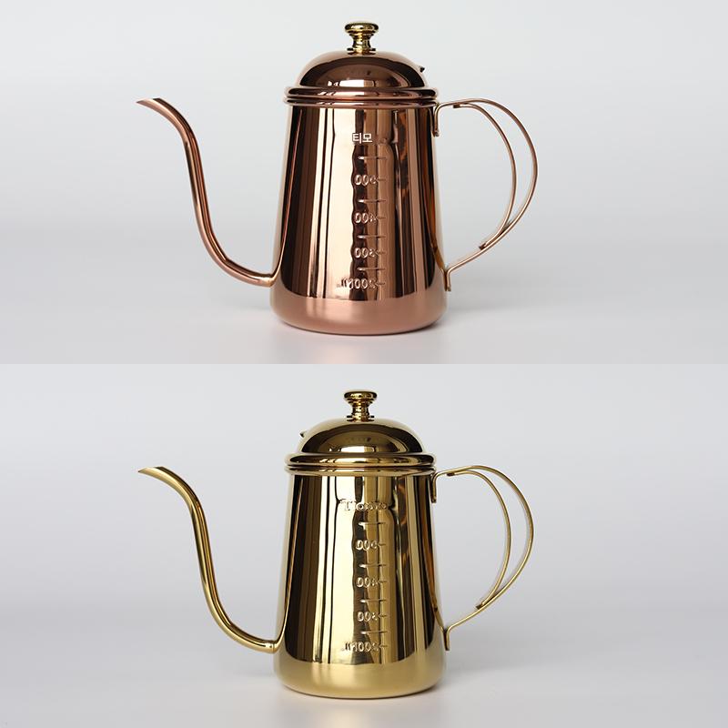 클리어런스 티아모 스테인리스 스틸 좁은 입구 냄비 손으로 끓인 커피 슬림 입구 냄비 드립 필터 주전자 온도계 포함