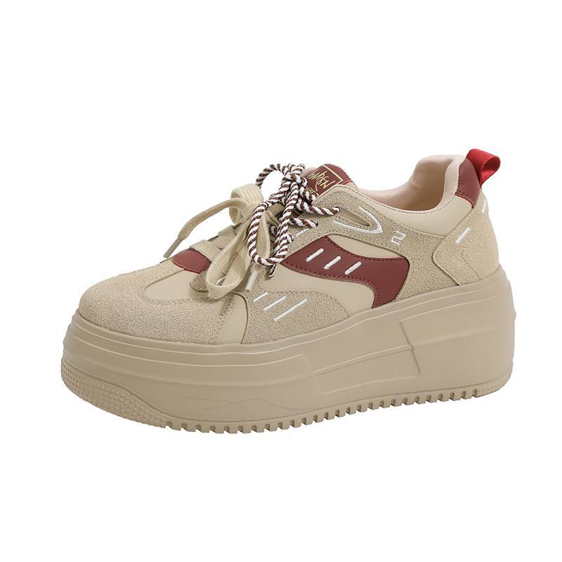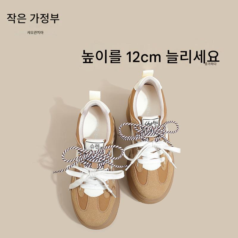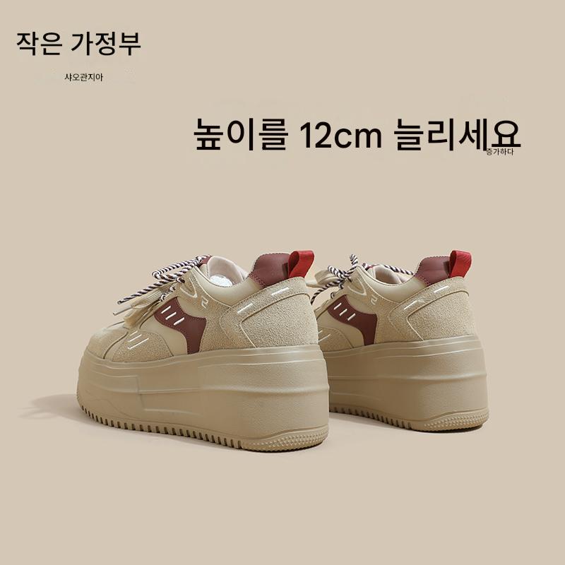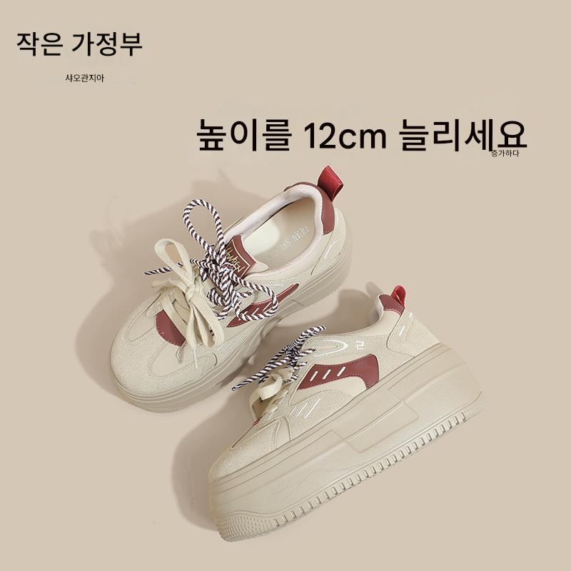 키가 작고 내부 높이가 높은 여성을 위한 정품 가죽 두꺼운 밑창 스포츠화 2025년 봄 새로운 플랫폼 레이스업 캐주얼 스니커즈