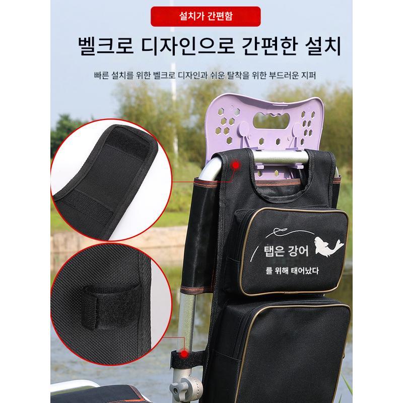 낚시 상자 후면 걸이 백팩 ,낚시 의자에 걸려 있는 배낭 |