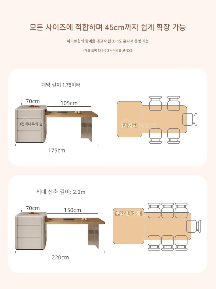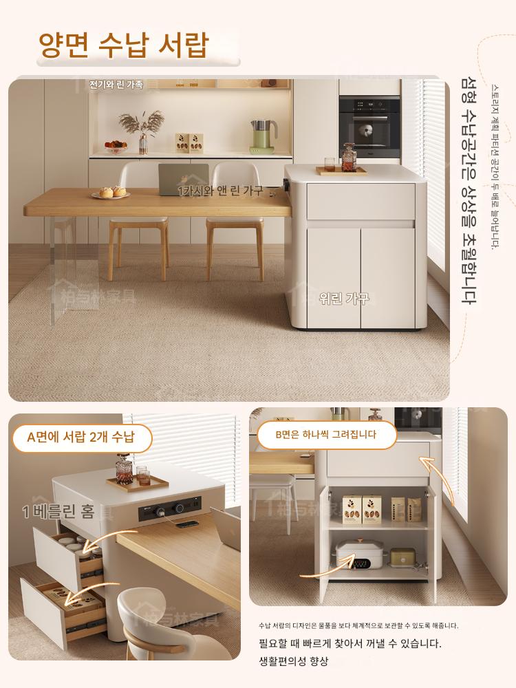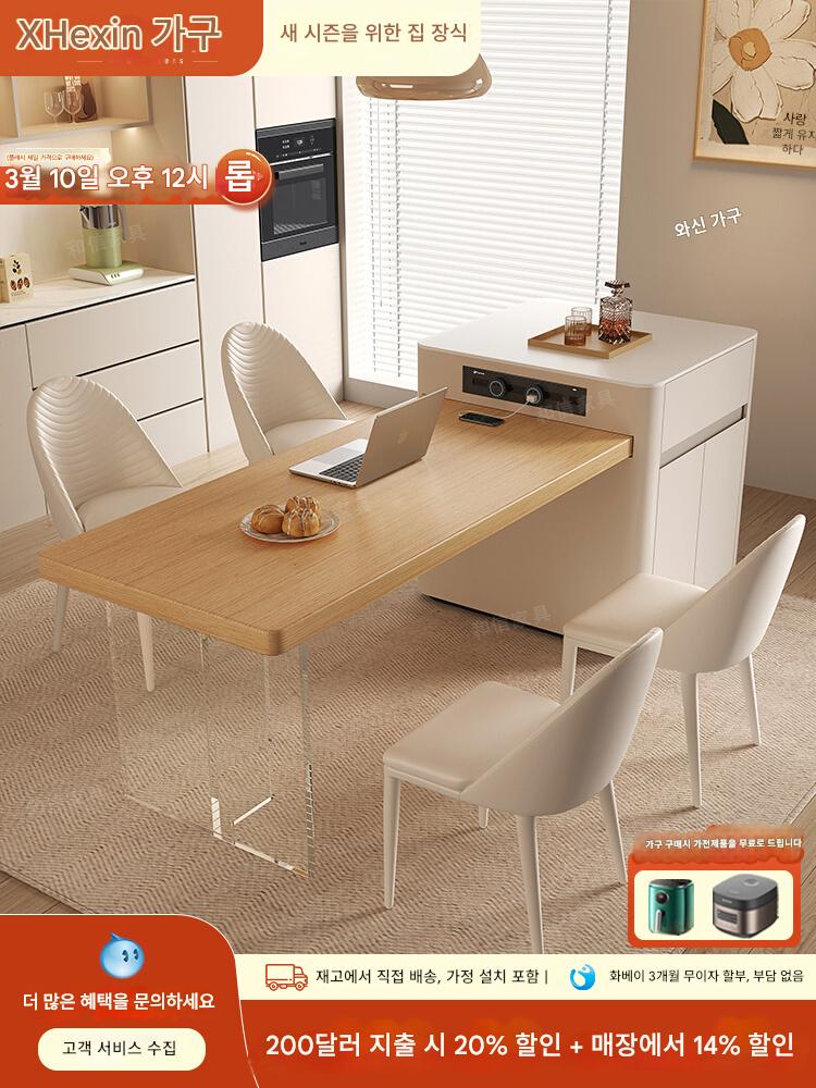 통나무 섬 식탁 통합 바 크림 스타일 홈 수납식 2025년 새 섬 작은 아파트