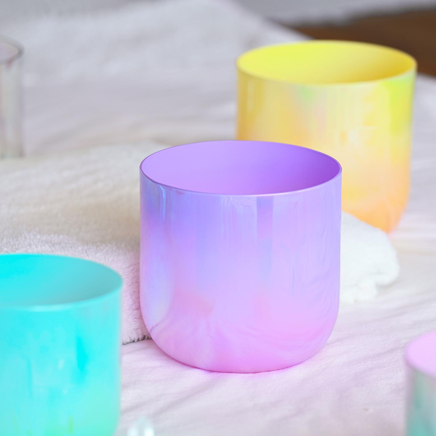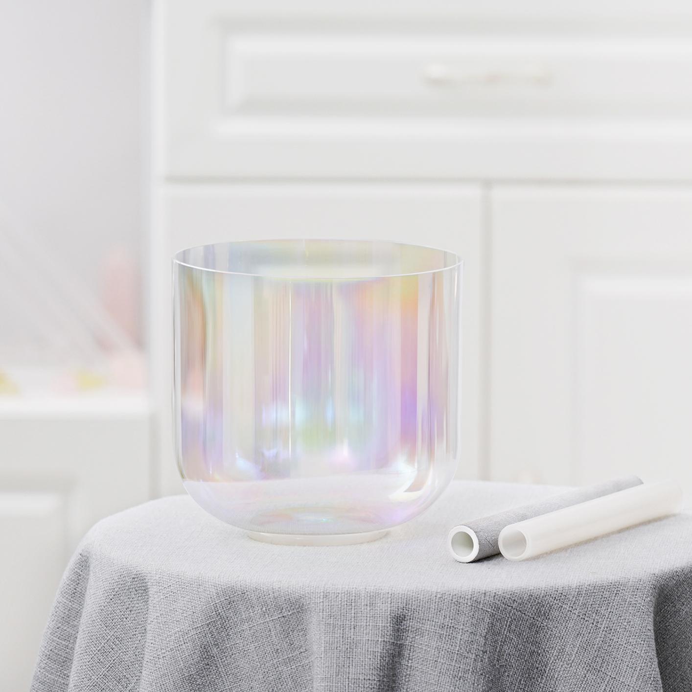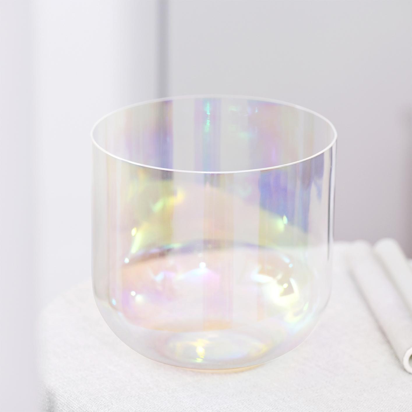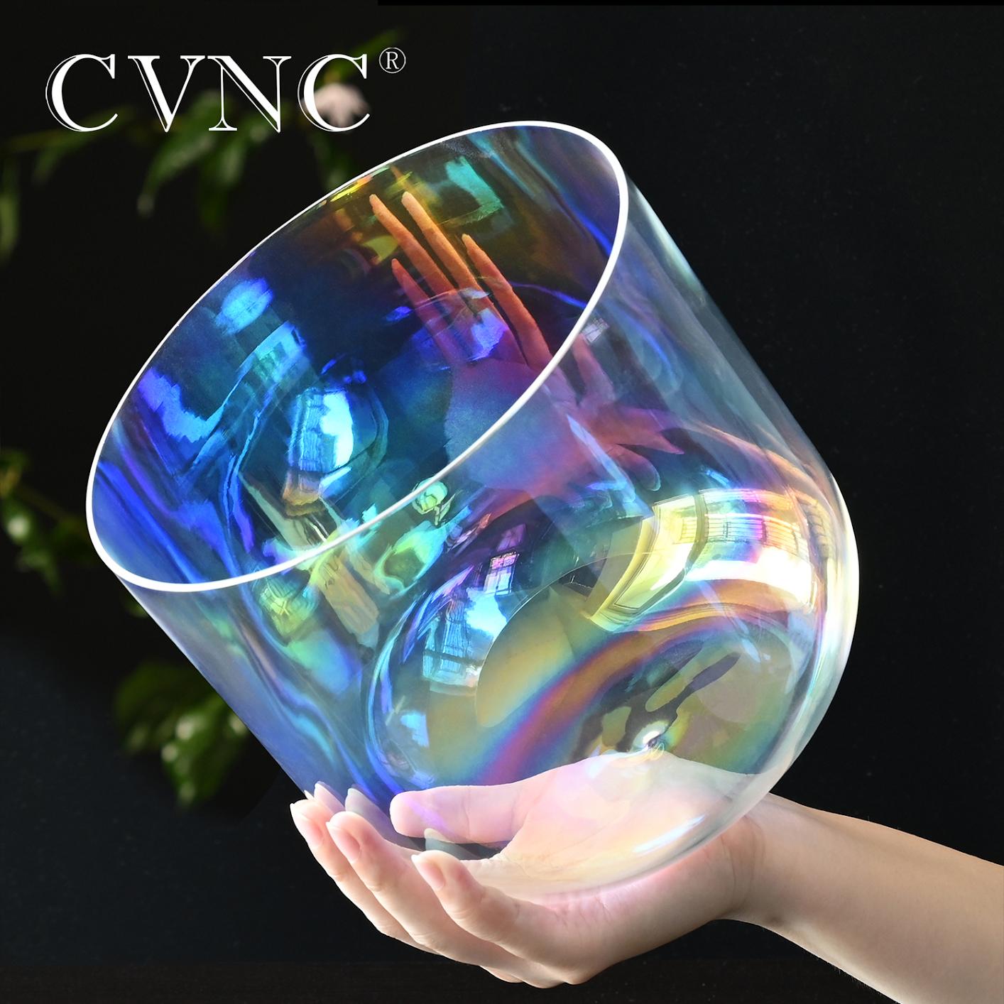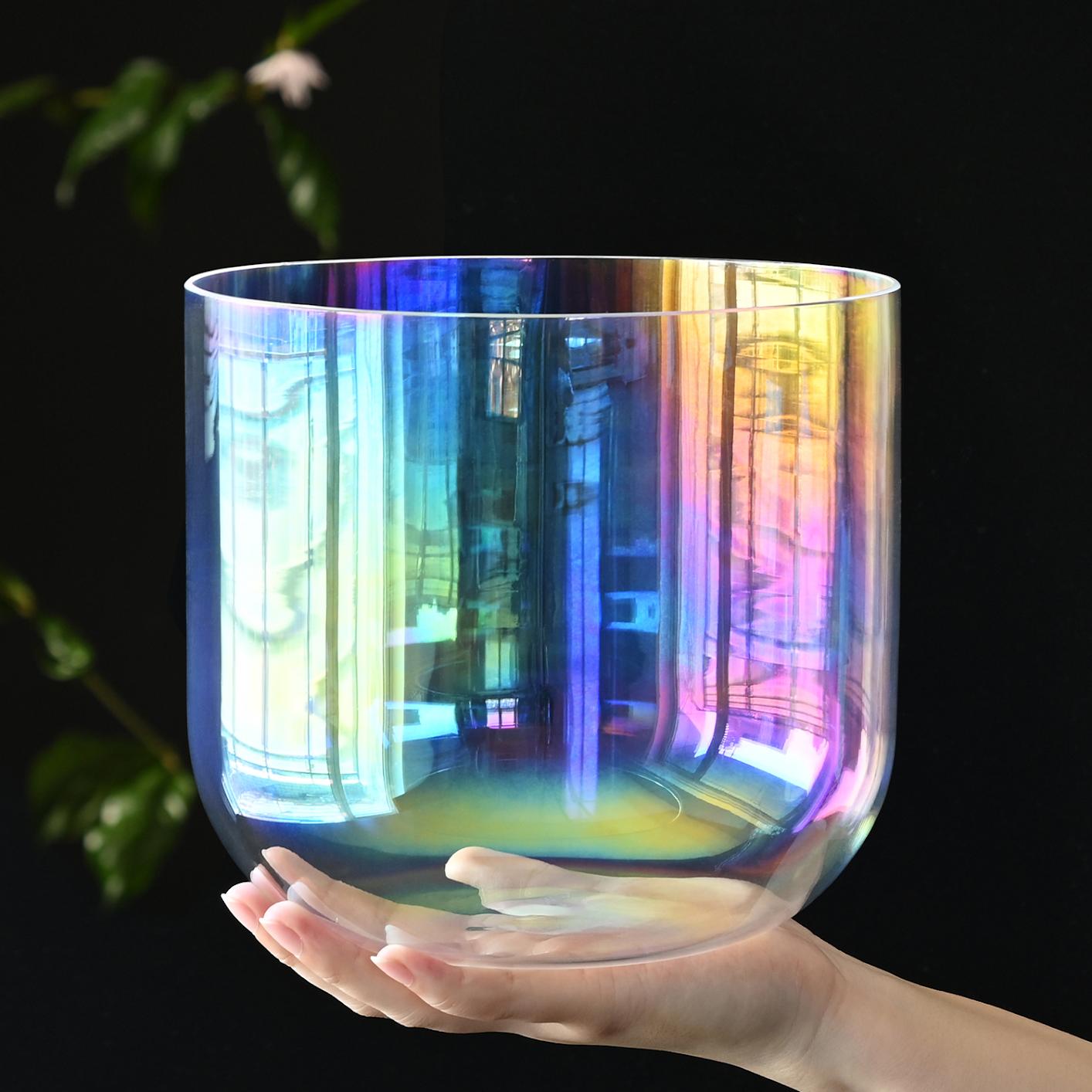 투명 크리스털 노래 그릇 다채로운 오로라 음악 그릇 연주 그릇 악기 7톤 8-14인치 요가 크리스털 그릇