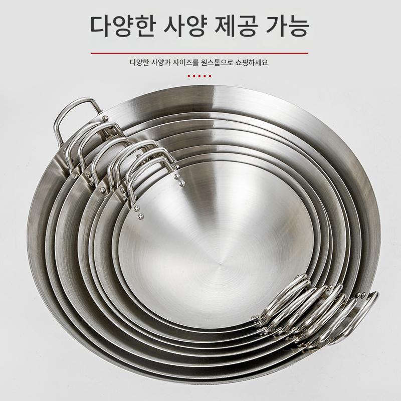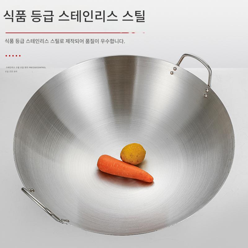 특대형 비자성 스테인리스 프라이팬 특대형 34-100cm 이중귀 둥근바닥 볶음삼각대 업소용 식당 농촌 대형 냄비