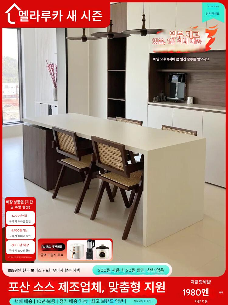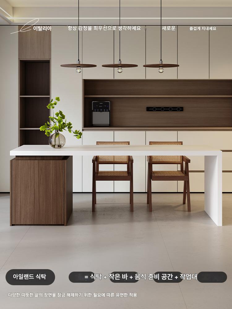 플러시 아일랜드 테이블 식탁 통합 고급 맞춤형 주방 2025년 신규 소형 아파트 중세 스타일 암석 슬래브 다운턴 가이드 테이블