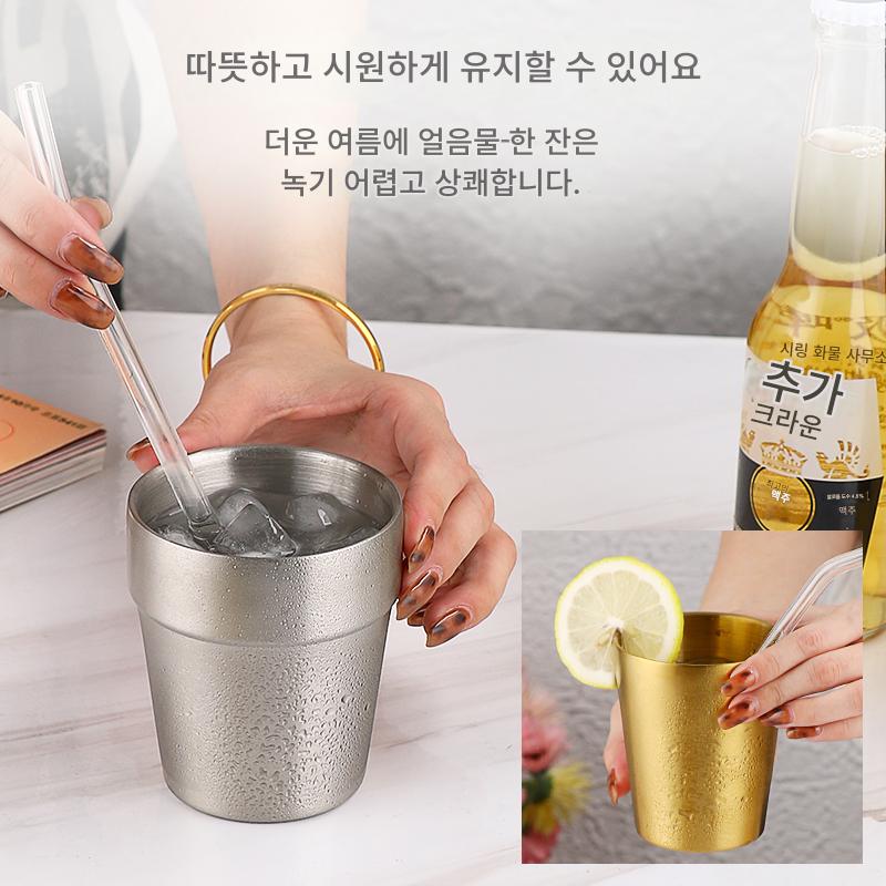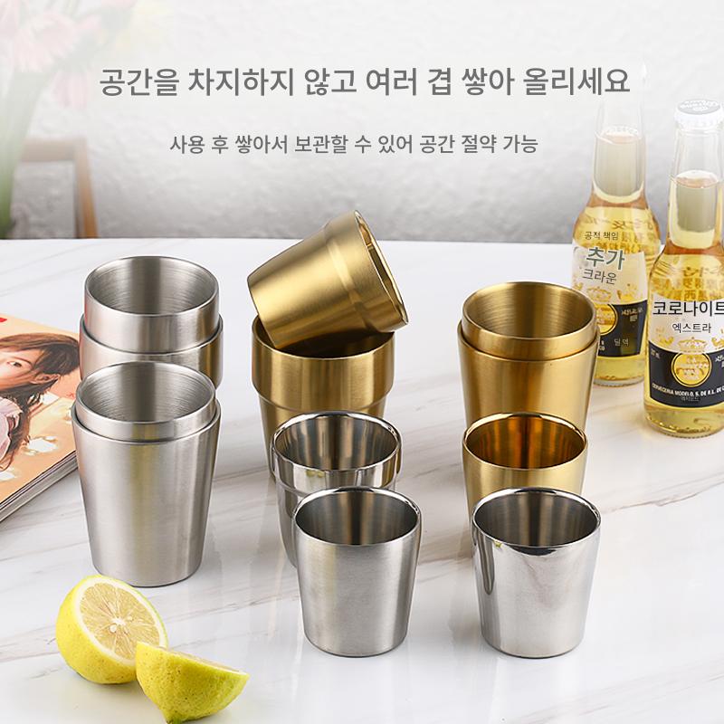 한국산 304 스테인리스 스틸 이중층 화상 방지 물컵 바베큐 레스토랑 맥주컵 티컵 음료컵 케이터링 골드