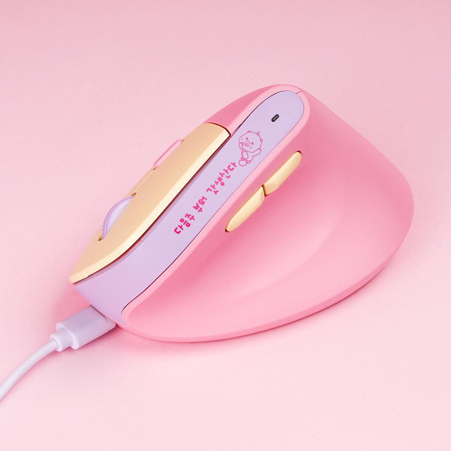 한국어 루피 핑크 비버 인체공학적 수직 수직 그립 마우스 무선 충전 무소음 만화 귀여운 여성