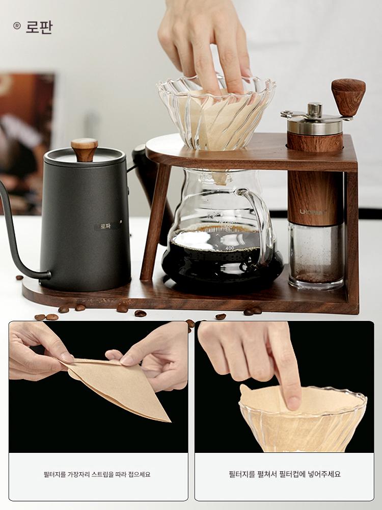 핸드드립 커피 코너포트 공유포트 드립필터 컵 주방용품 휴대용 가정용 세트 아카시아나무 커피스탠드
