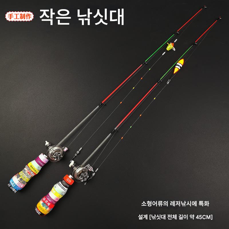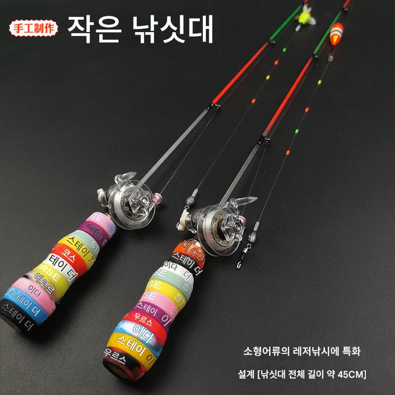 핸드메이드 틱톡 셀럽 소형 낚싯대 미니 초단단 싱글섹션 소형 낚싯대 미노우 화이트 스트라이프 마이크로 낚싯대 릴