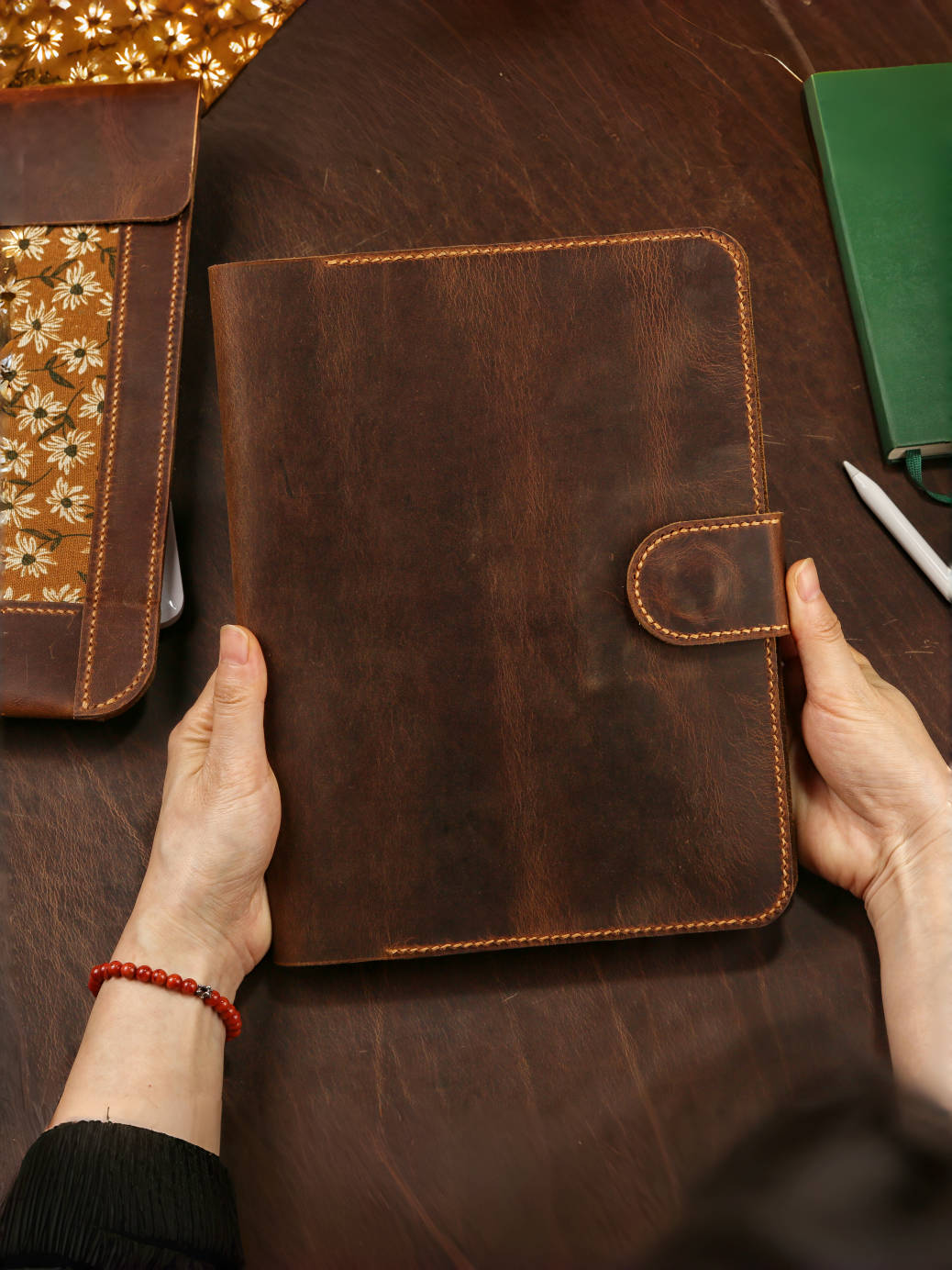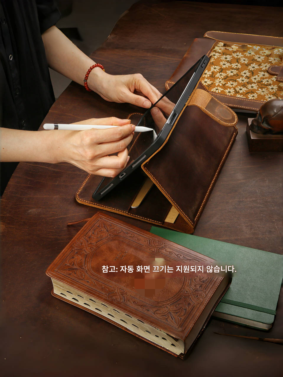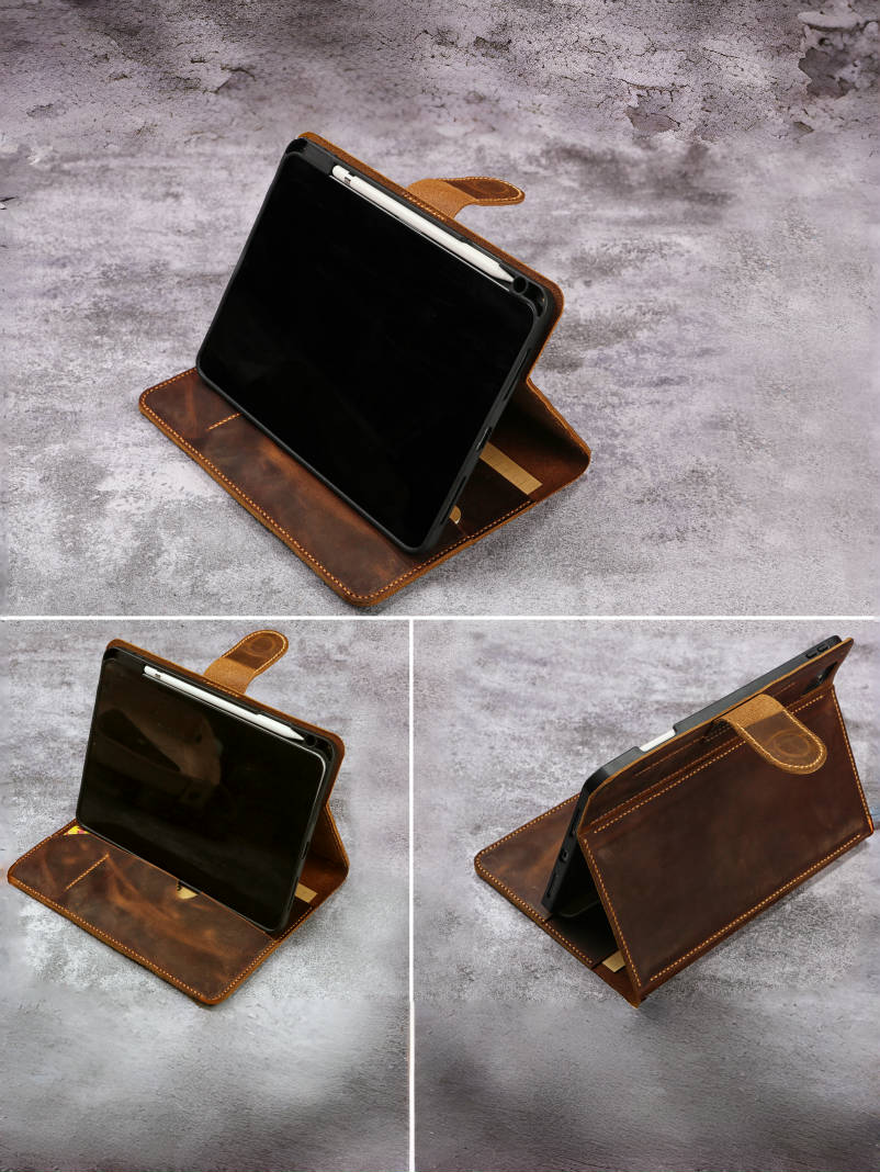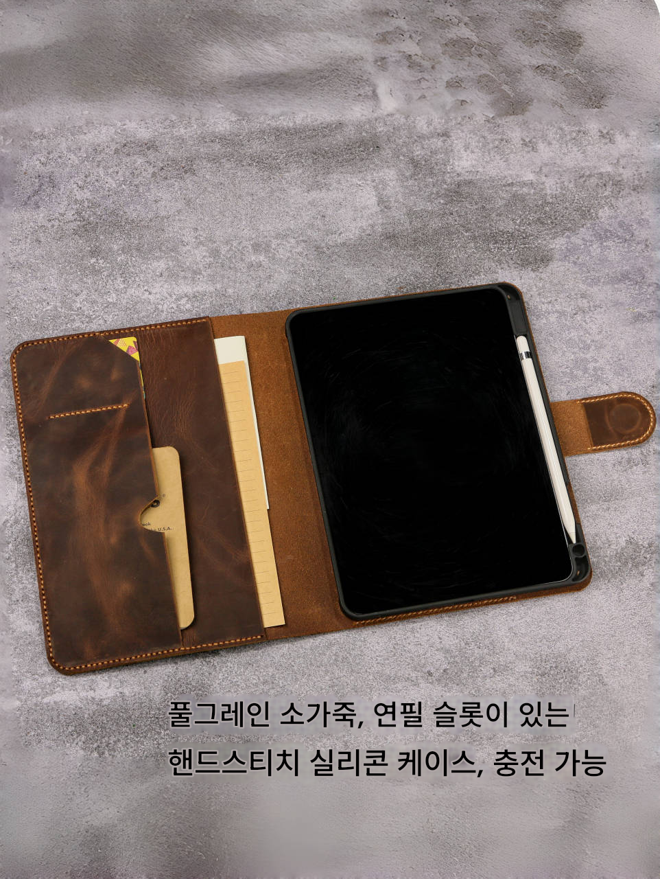 핸드메이드 1층 소가죽 정품 크레이지 호스 가죽 미국 레트로 브라운 유럽 및 미국 접이식 IPAD 보호 커버 Y02-IXPMNC
