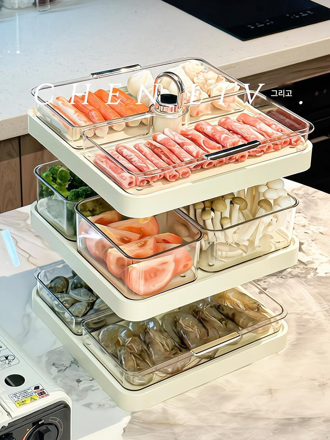 [행복감을 높여주는 좋은 것들] 냄비 접시와 반찬 쟁반 가정용 다층 파티션 회전 접시 접시 보관 선반