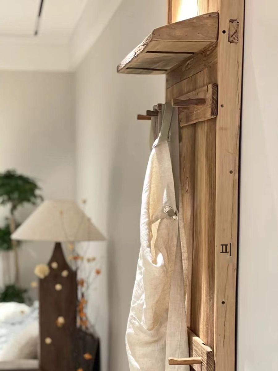 홈스테이 스타일 견고한 나무 옷걸이 보드 코트 랙 다기능 바닥 랙 매칭 보관 신발장 컨트리 스타일