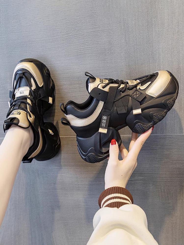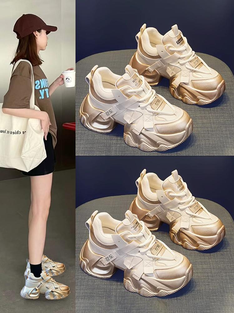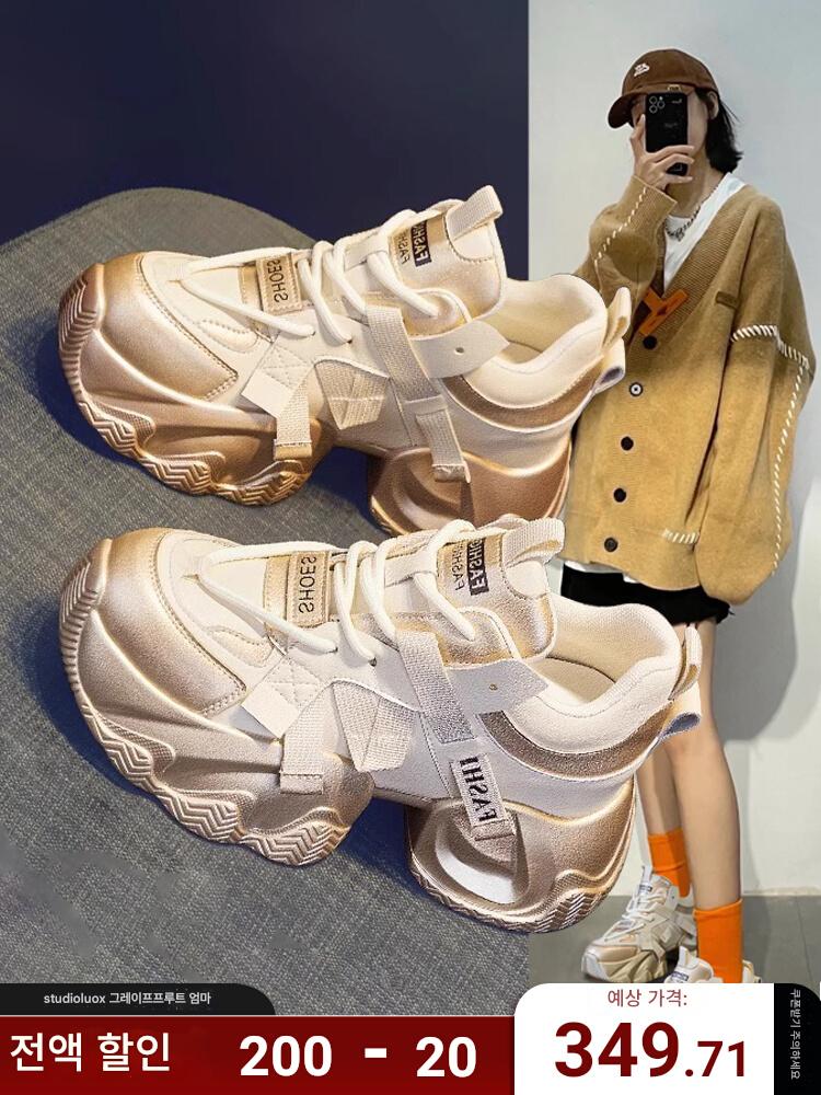 홍콩 여성용 두꺼운 밑창 튼튼한 아빠화, 발을 더 ​​작게 보이게 해줍니다 2024년 신상품 봄 가을 유행 핫셀링 내부 키높이 스포츠 캐주얼화