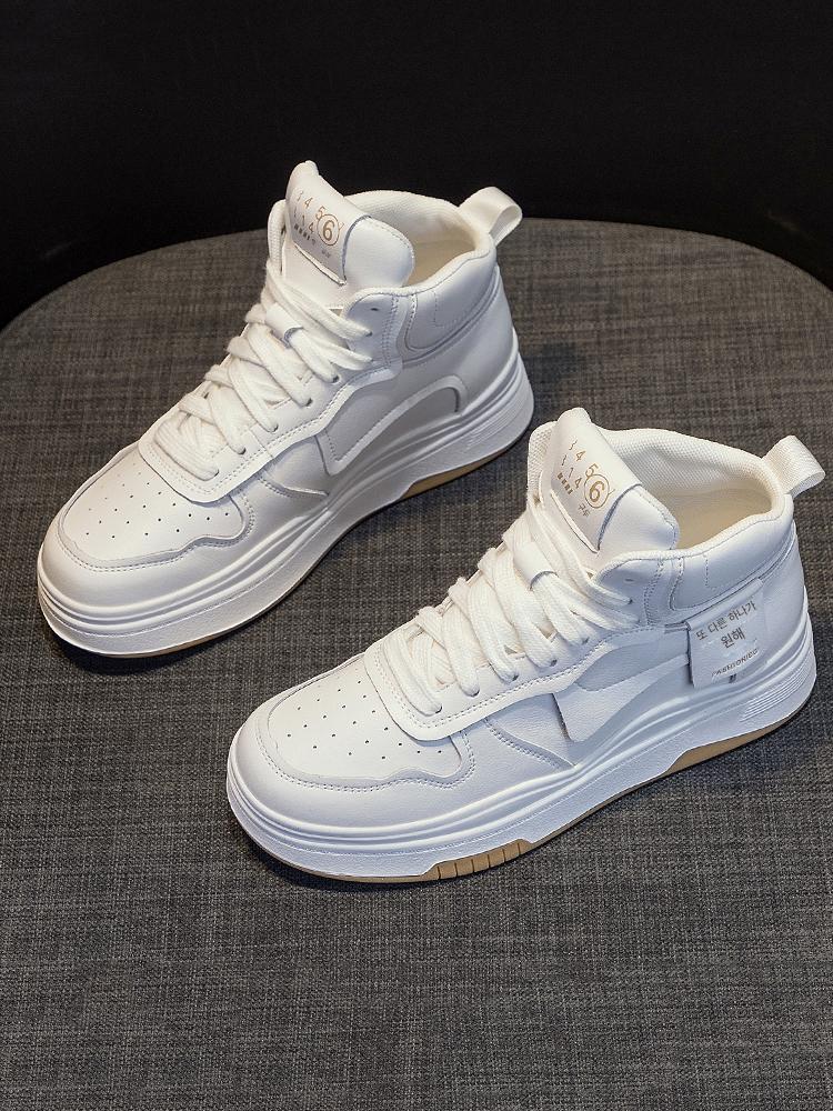 홍콩 정품 가죽 하이탑 화이트 슈즈 여성용 봄과 가을 2025 새로운 올매치 두꺼운 밑창 슈즈 스포츠 캐주얼 슈즈 트렌드의 한국 버전