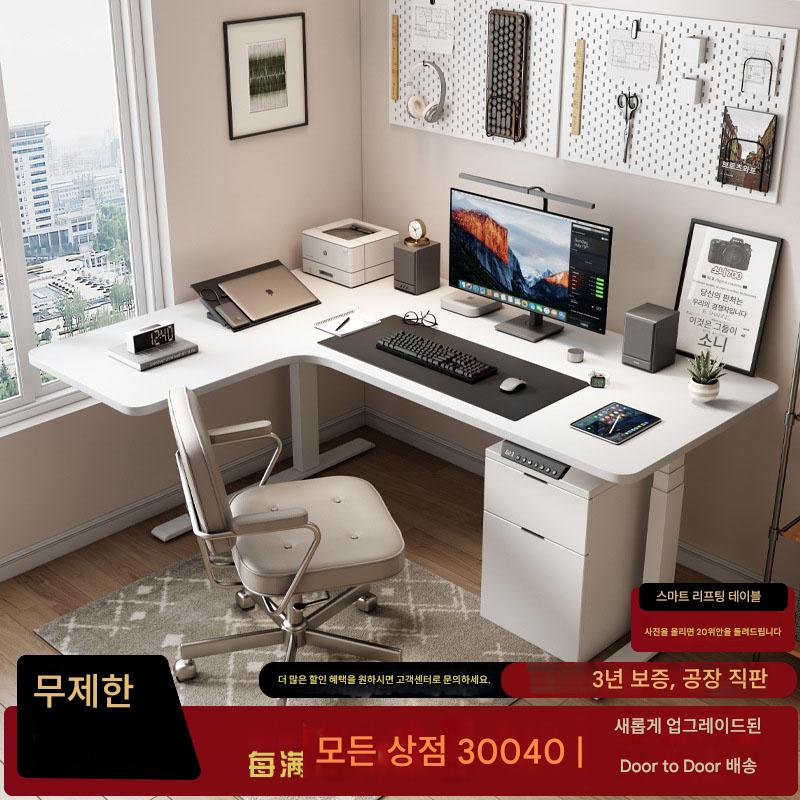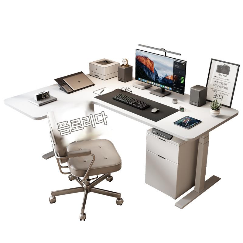 화이트 코너 전동 리프트 책상 L자형 스터디룸 심플 컴퓨터 책상 스마트 코너 홈 데스크
