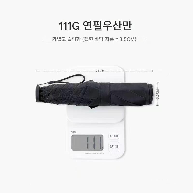 111g 초경량 깃털 3단 우산 휴대용 컴팩트 블랙 접착제 선크림 UV upf50+ 햇살 좋은 날과 비오는 날을 위한 우산
