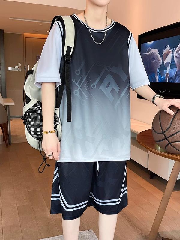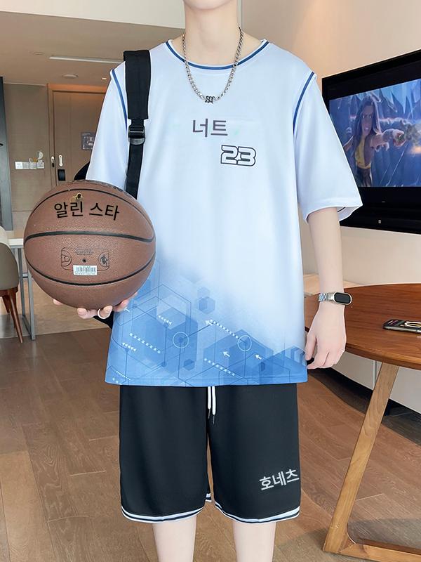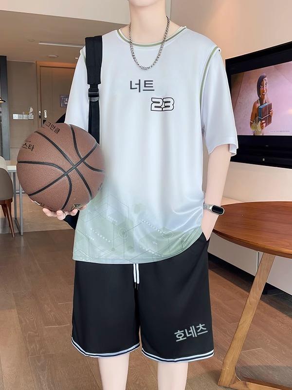 12~15세 남아용 반팔 티셔츠와 반바지 여름용 십대 학생용 아이스실크 대형 아동용 스포츠 농구복