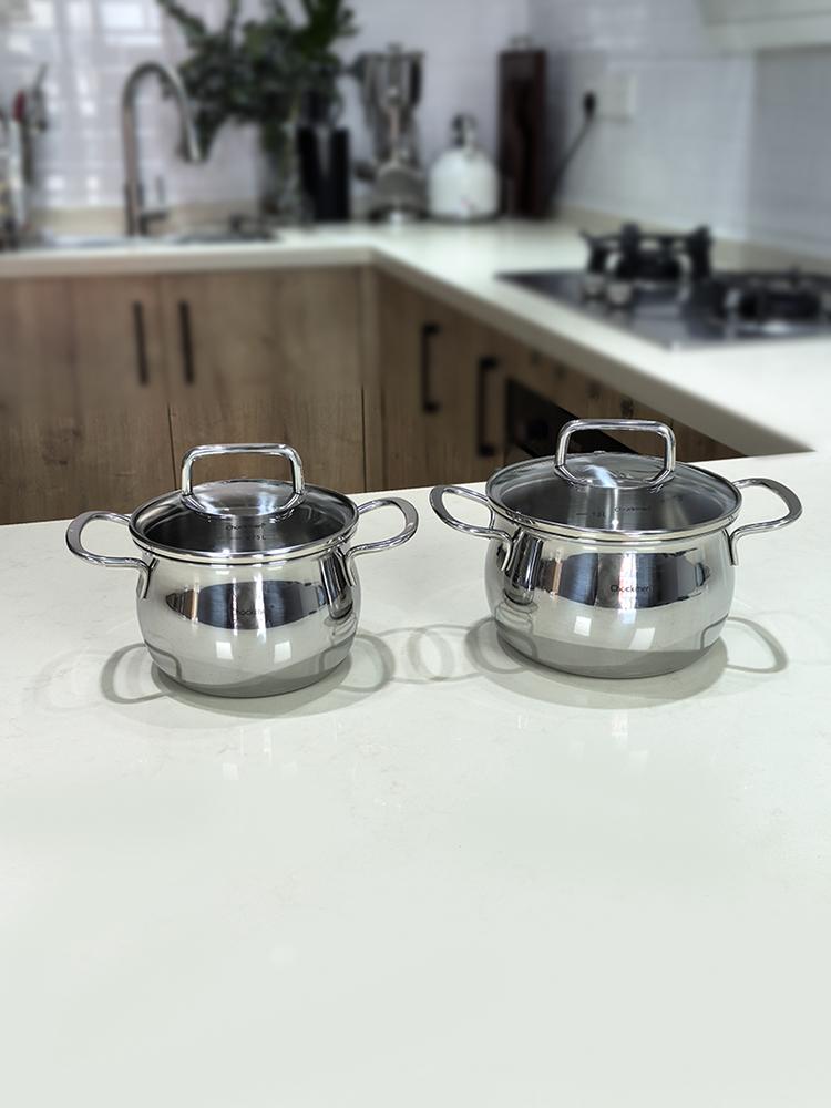 18/10 스테인리스 스틸 더블 이어 소형 우유 냄비 이유식 냄비 소형 수프 냄비 스튜 냄비 유도 조리기 범용 12/14cm