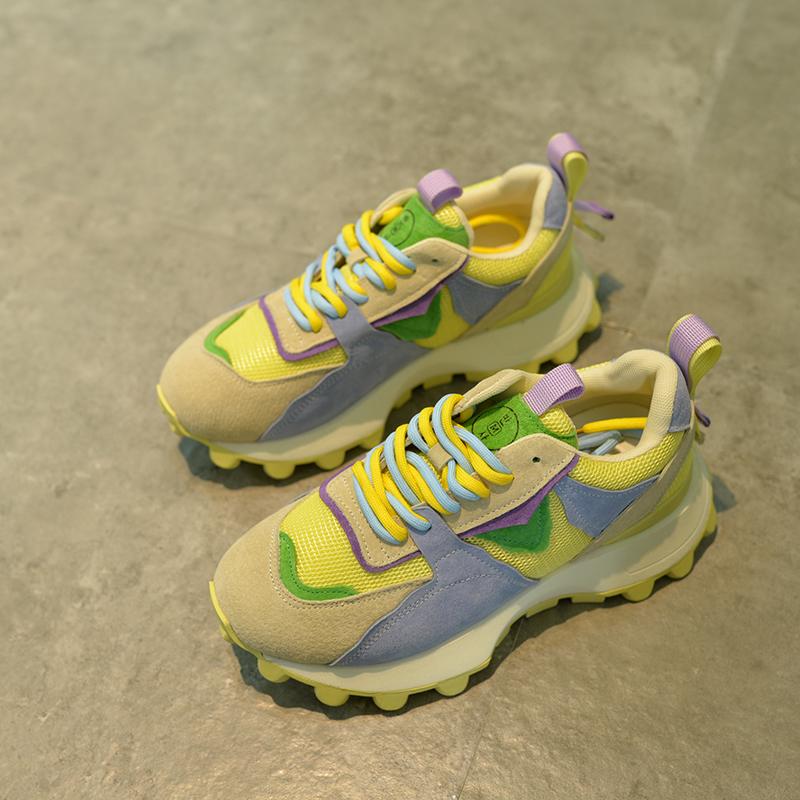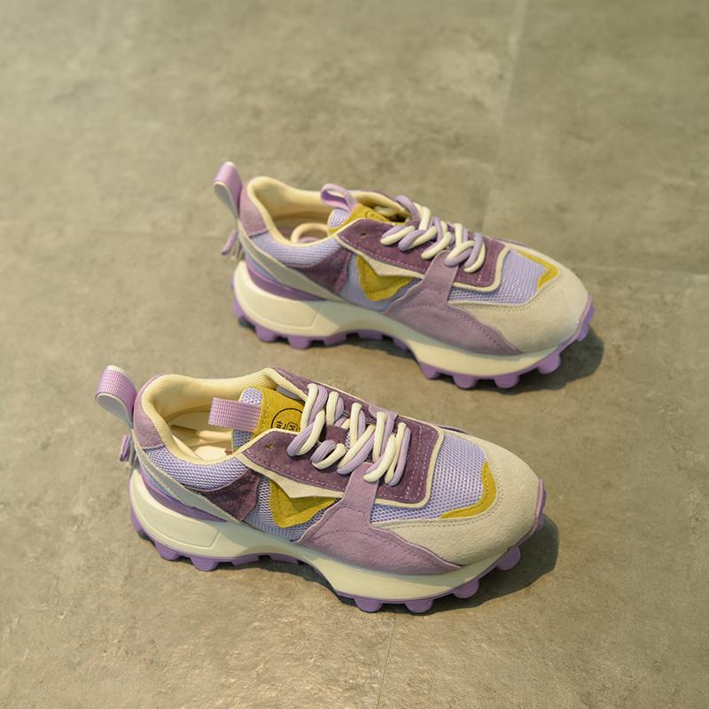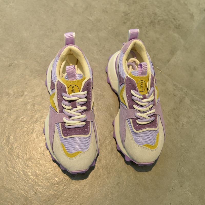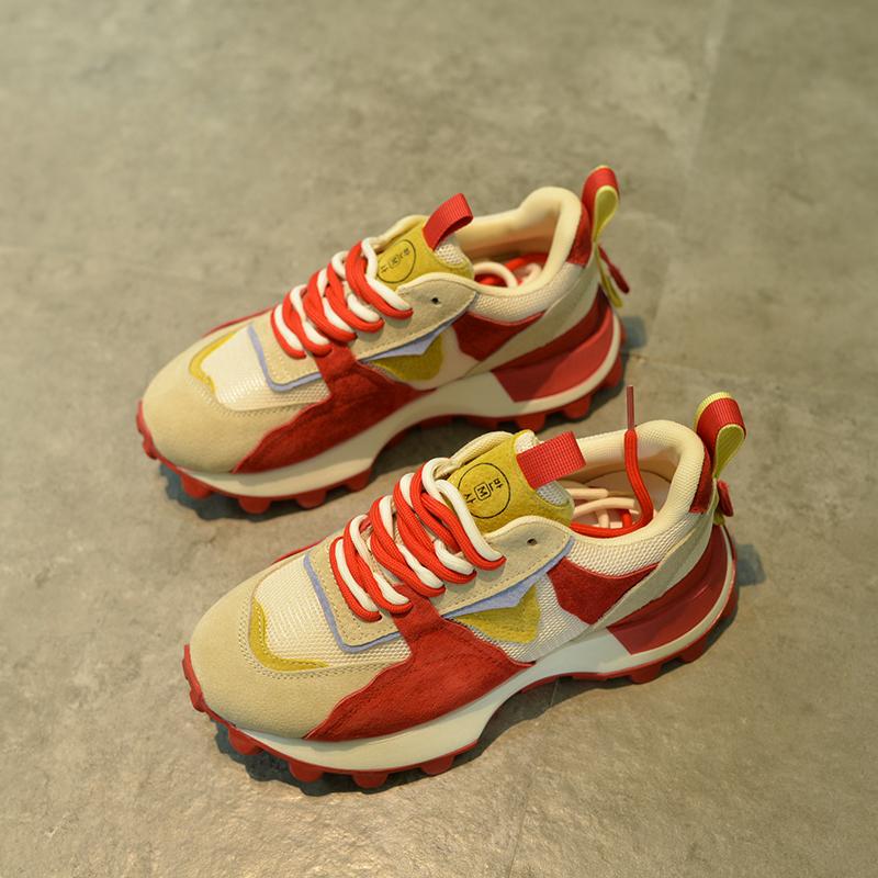 2024 봄과 겨울 신상품 여성화 정품 가죽 라운드 투 스포츠 캐주얼화 두꺼운 바닥 높이 러닝화 포레스트 검프화